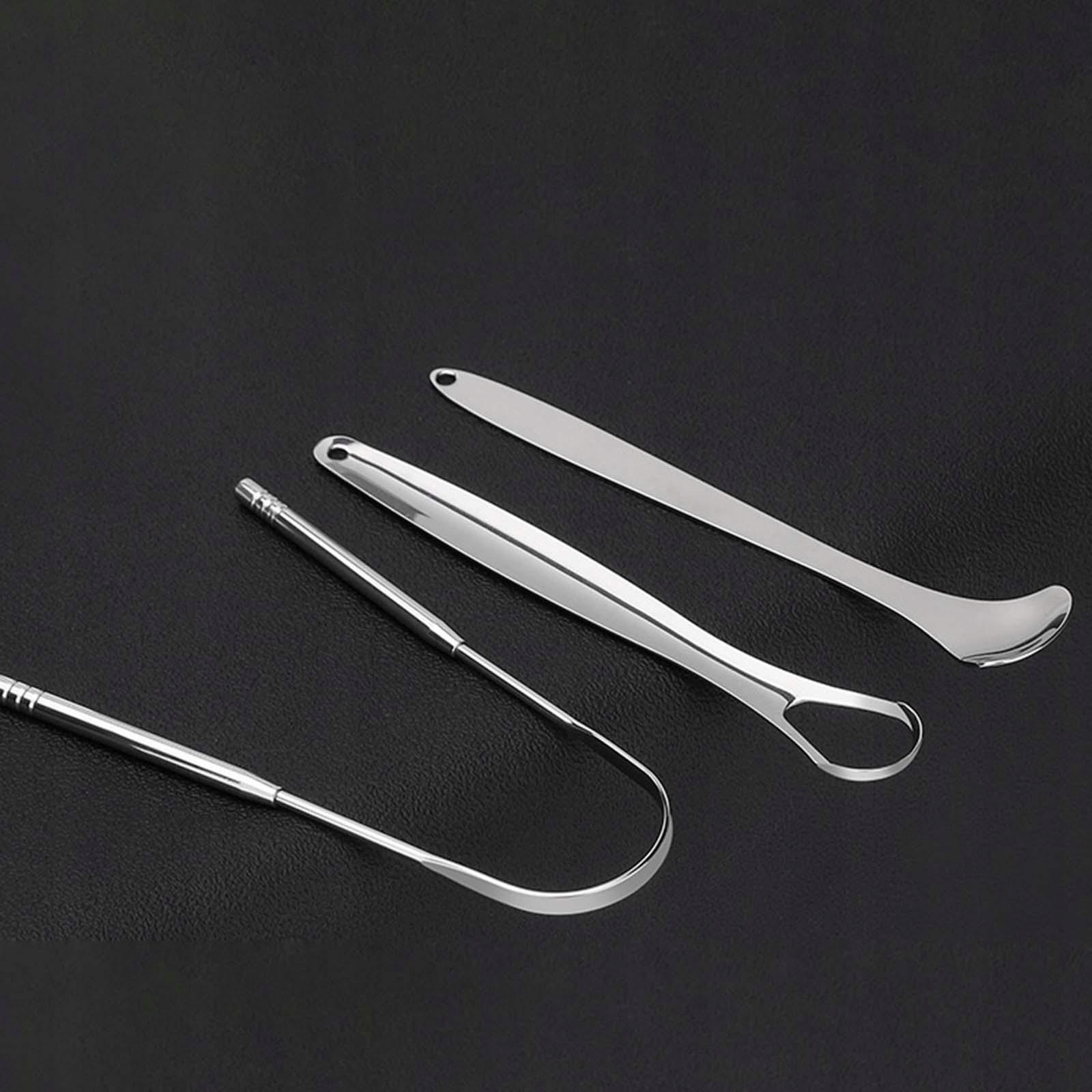Упаковка: 3 части/набор инструментов для очистки, включая 1 скребок, 1 пустого и 1 скребок с ложкой. многоразовый, долговечный и прост в чистке. Пищевые остатки, чтобы уменьшить неприятный запах дыхания. Инструмент может эффективно очистить рот, не повредив рту.