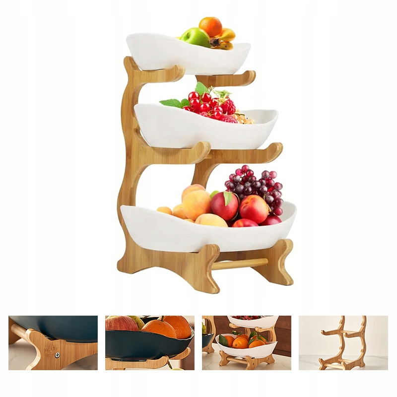 Ваза для фруктов, 3-х ярусная, с подставкой из натурального бамбука, тарелкой для подачи фруктов, тортов, конфет