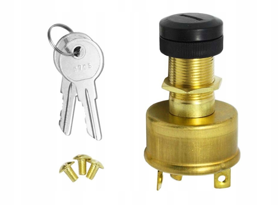 Универсальный выключатель зажигания двигателя, изготовлен из латуни. Защищен герметичной резиновой крышкой. Трехпозиционный переключатель ВЫКЛ./ЗАЖИГАНИЕ/ПУСК. Ключи из нержавеющей стали.