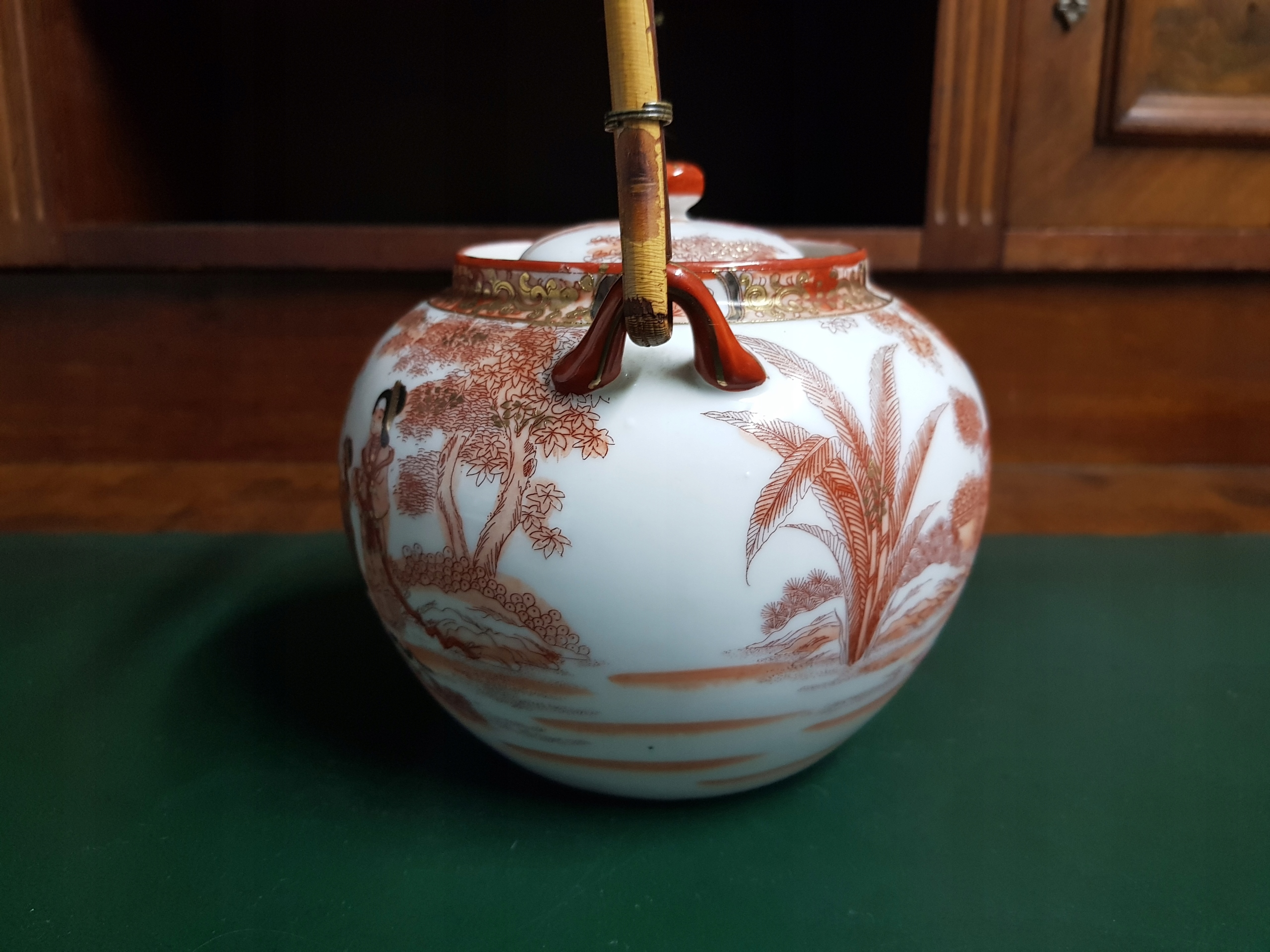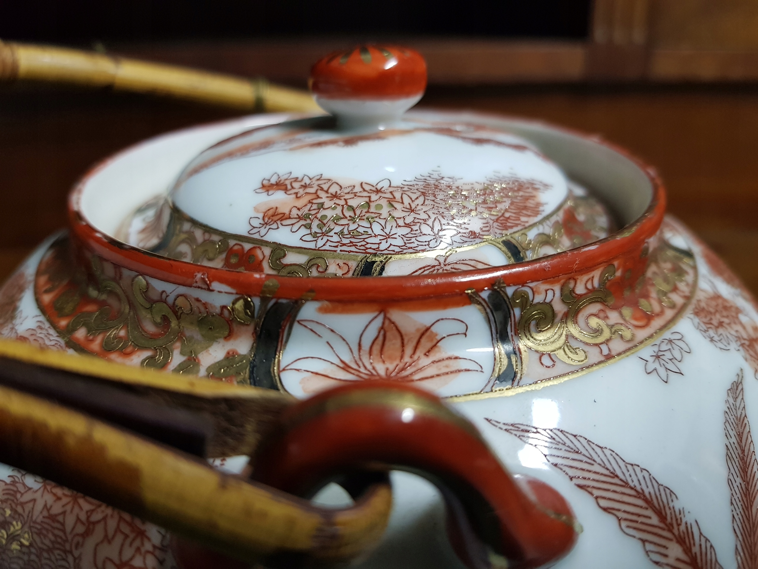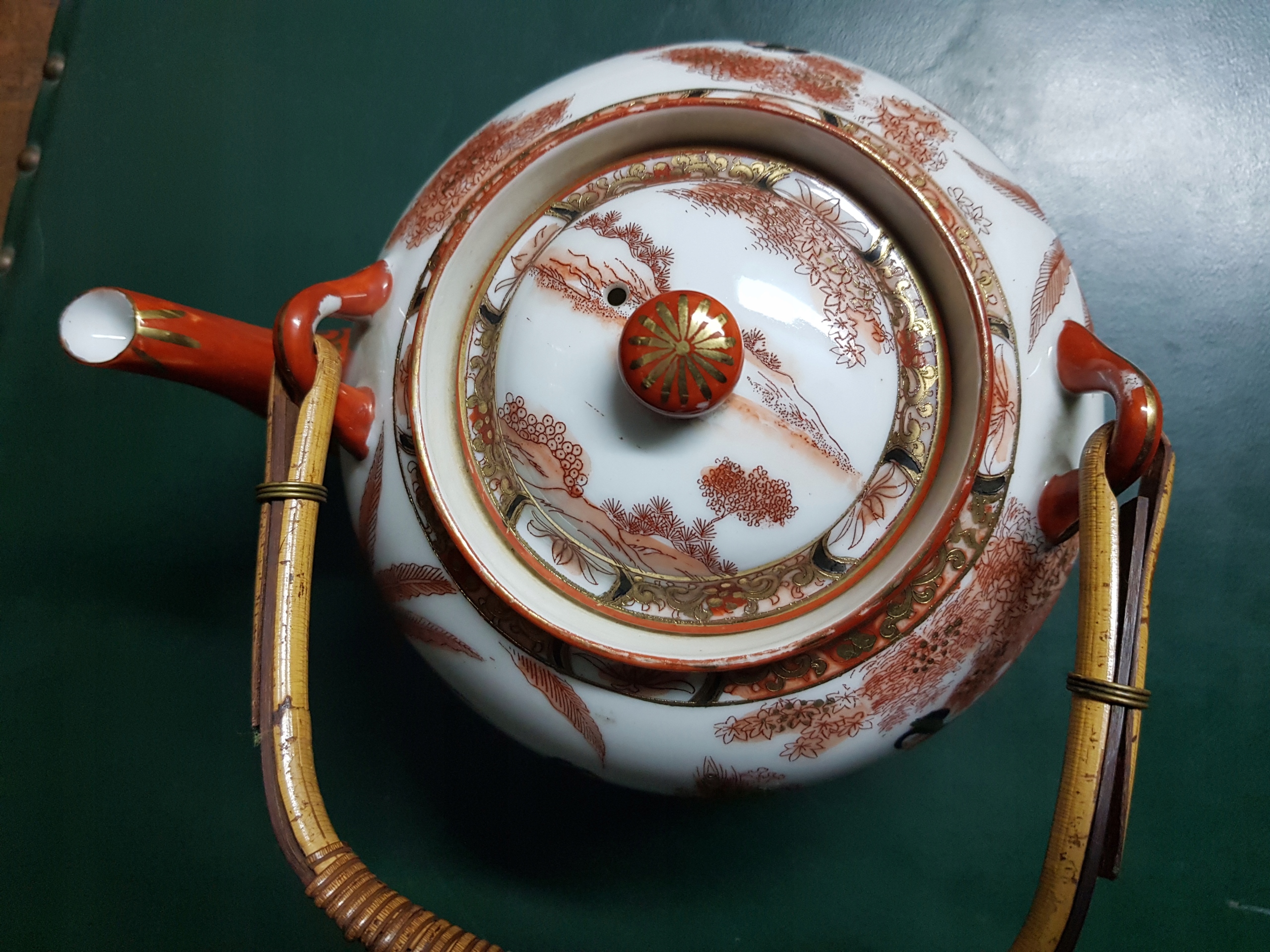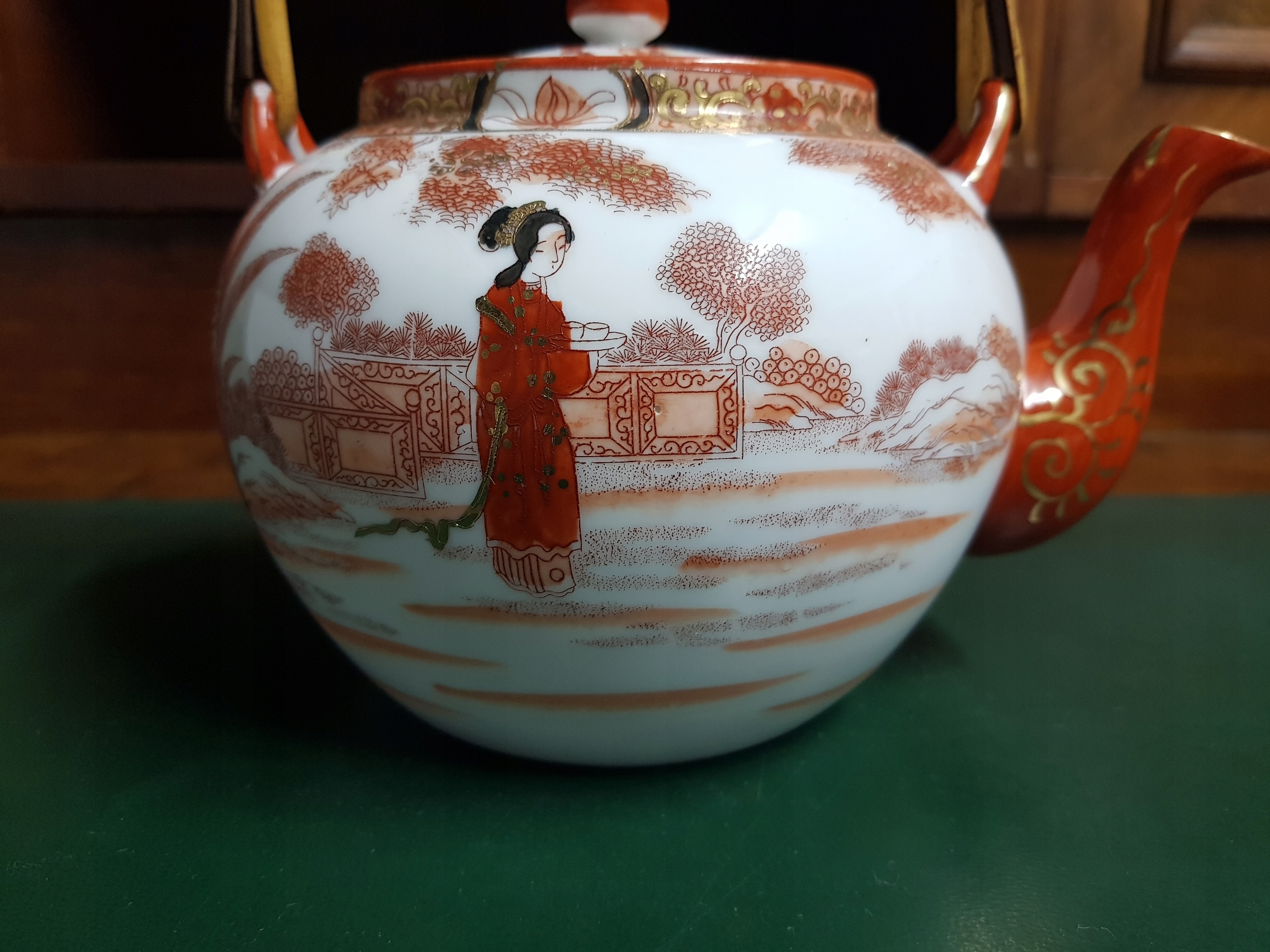 Предмет аукциона — чайник с изображением 3-х гейш. Весь предмет расписан вручную. Дополнительно покрыт золотом.