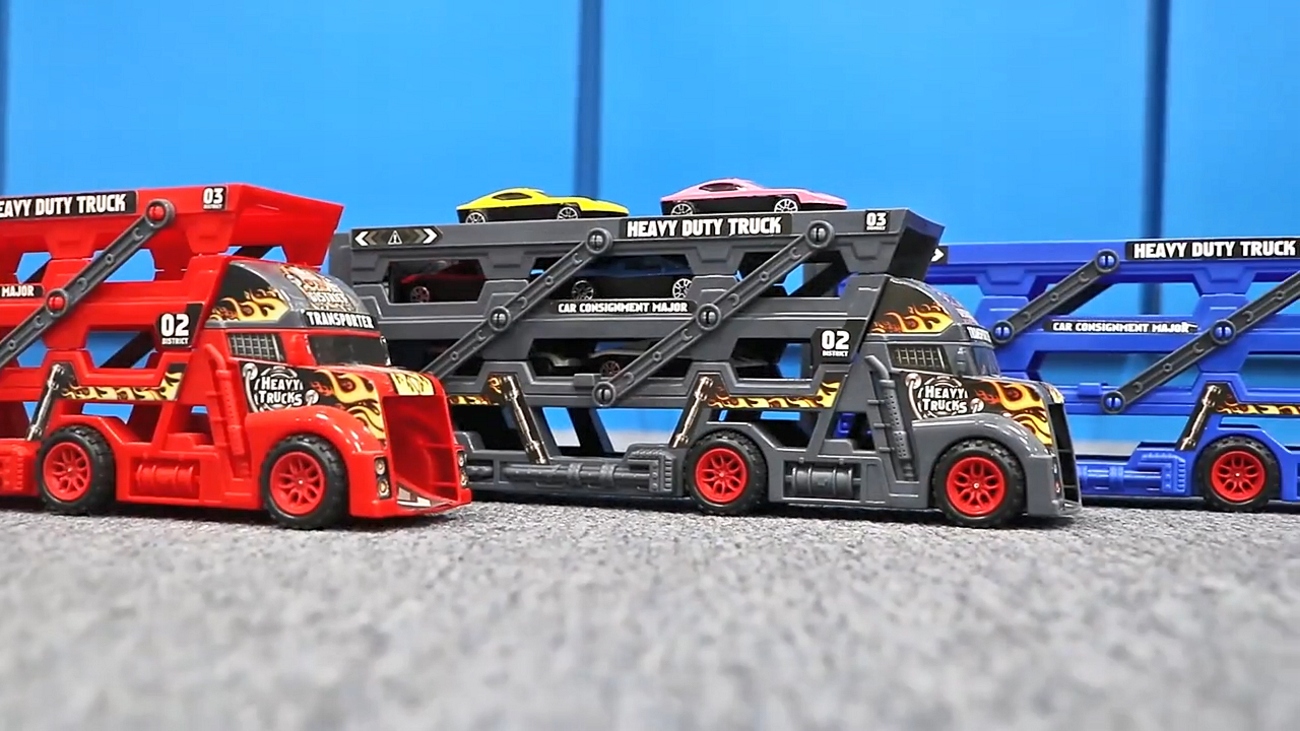 Грузовик имеет 3-х уровневую платформу, на которой могут разместиться до 9 мини-автомобилей.