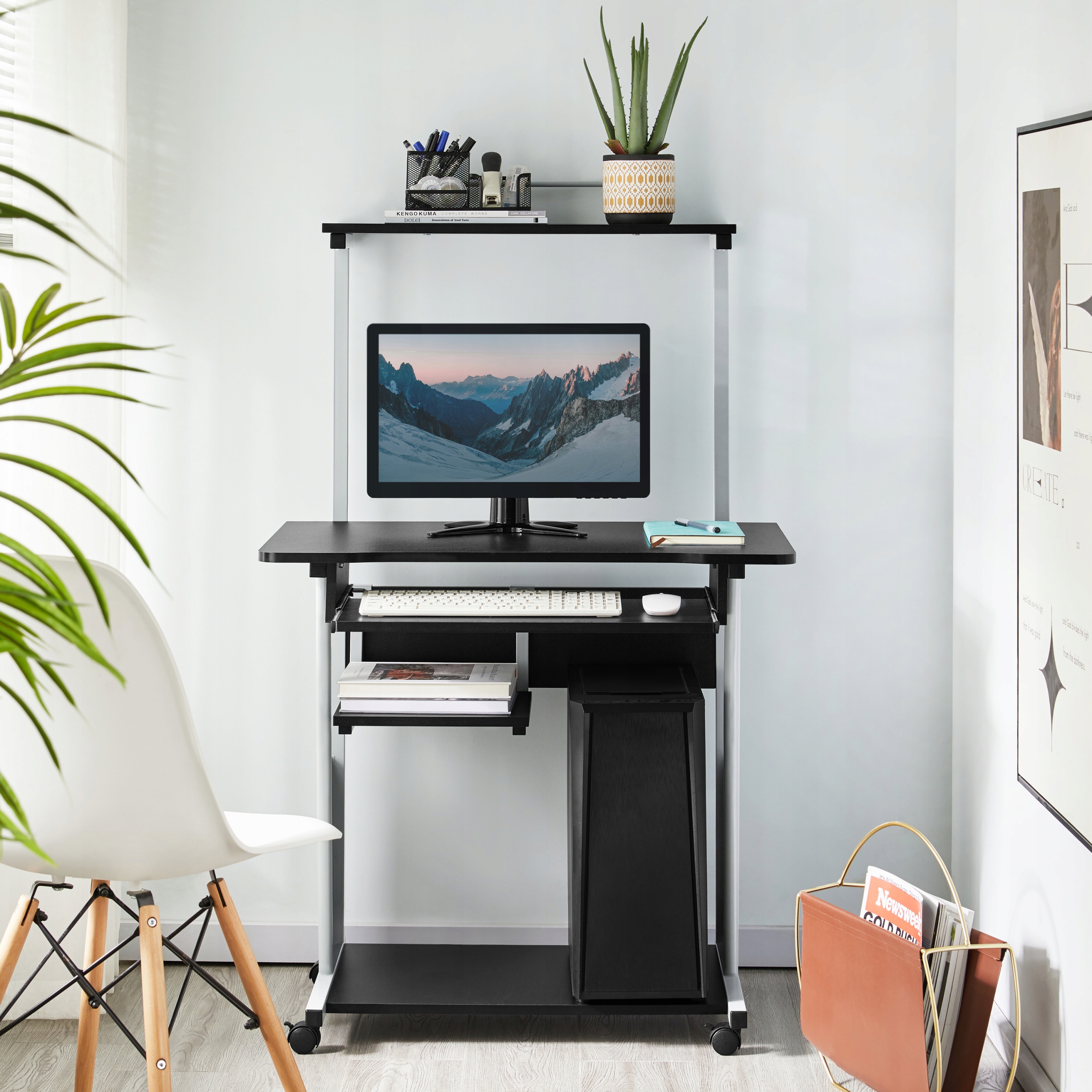3-уровневой компьютер Yaheetech, мобильный, с полками, черные