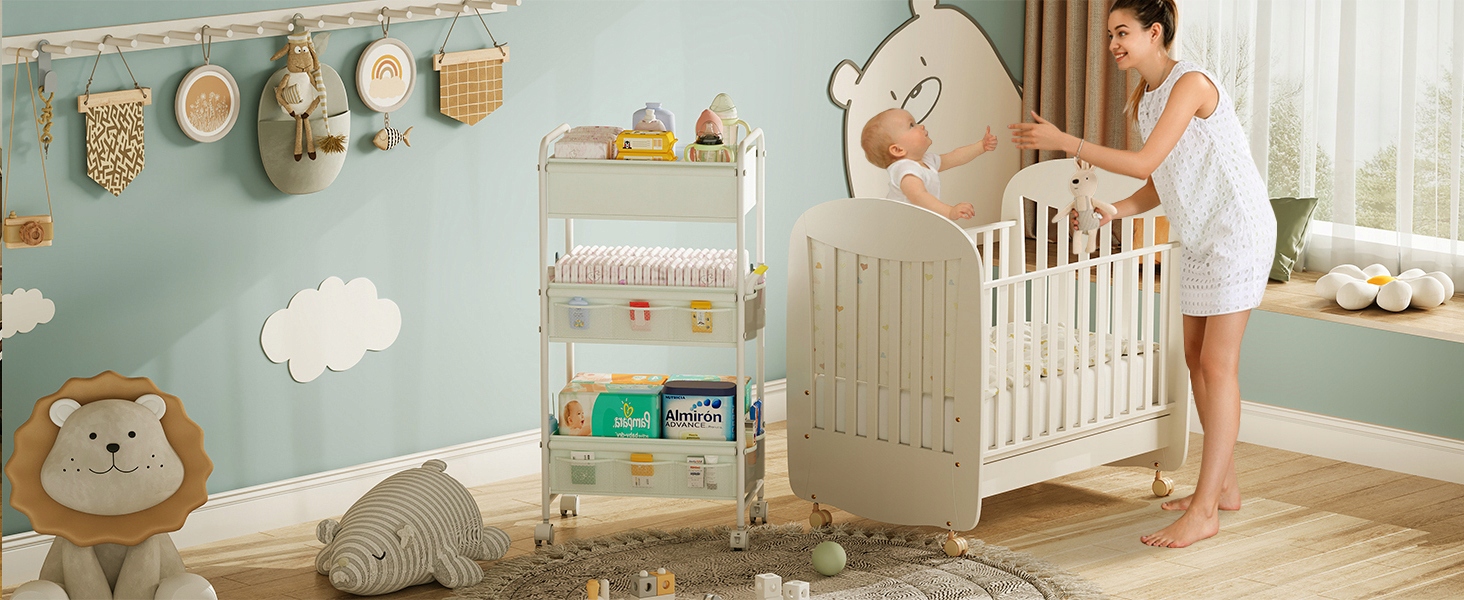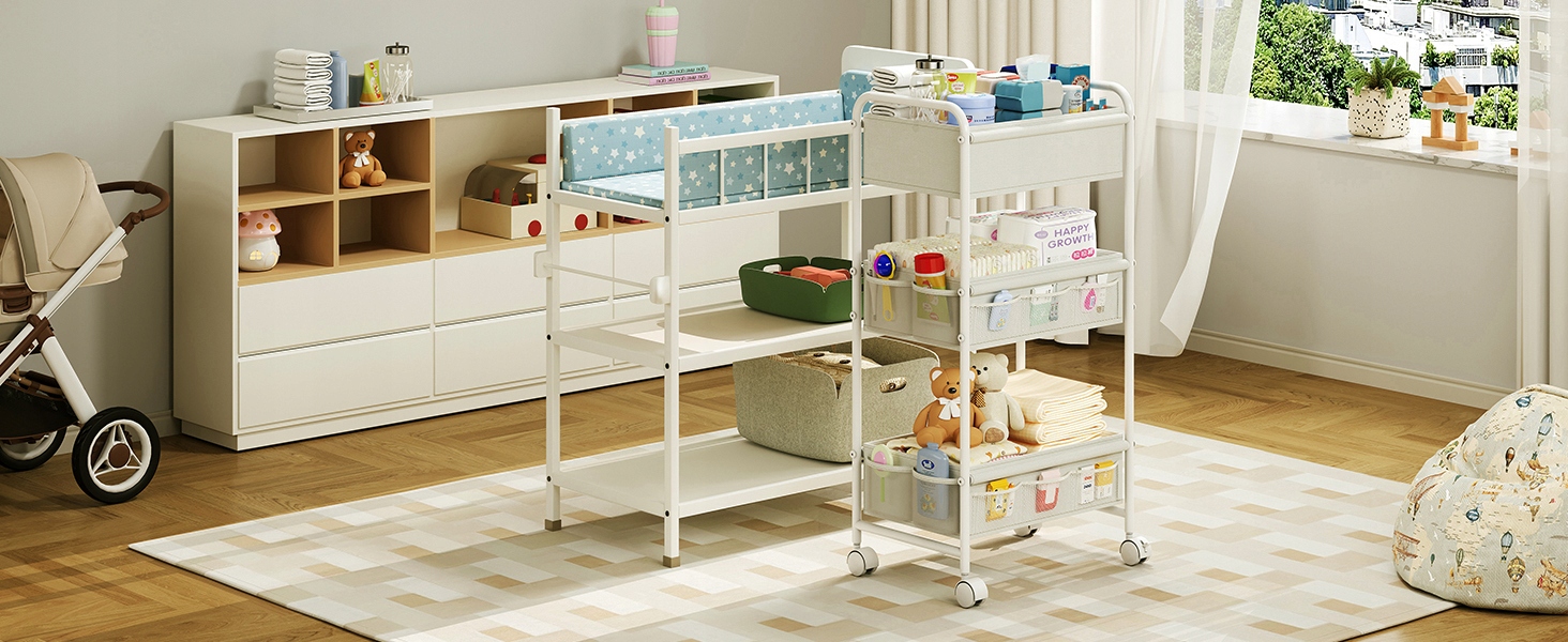 【Удобная мобильность, экономия времени и усилий】: нашу тележку для детских подгузников, оснащенную устойчивыми и маневренными колесами, можно легко переместить в любой угол вашего дома, будь то спальня, гостиная или на открытом воздухе, что обеспечивает мгновенный доступ к детским принадлежностям в любом месте и в любое время, что значительно сокращает время, затрачиваемое на поиск и переноску.