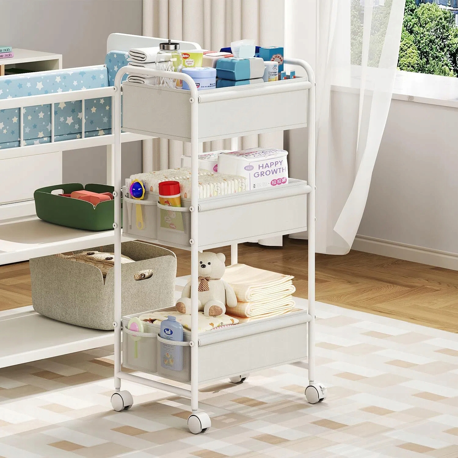 3-х уровневый органайзер для детских подгузников, передвижная детская организация на колесах, с 2 перегородками и 14 сетчатыми карманами. Прочная металлическая универсальная тележка для организации предметов первой необходимости в детской, спальне, ванной комнате.