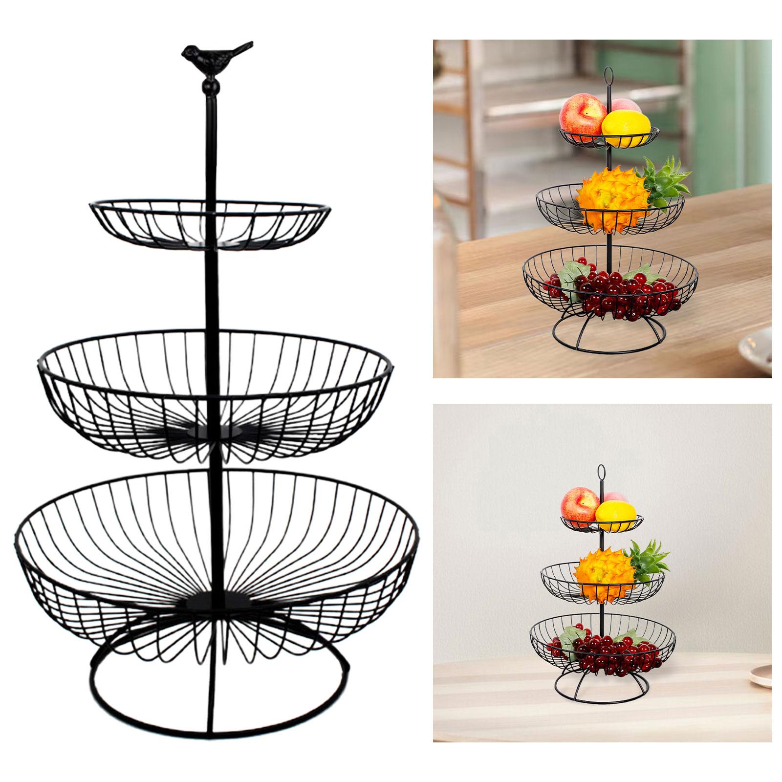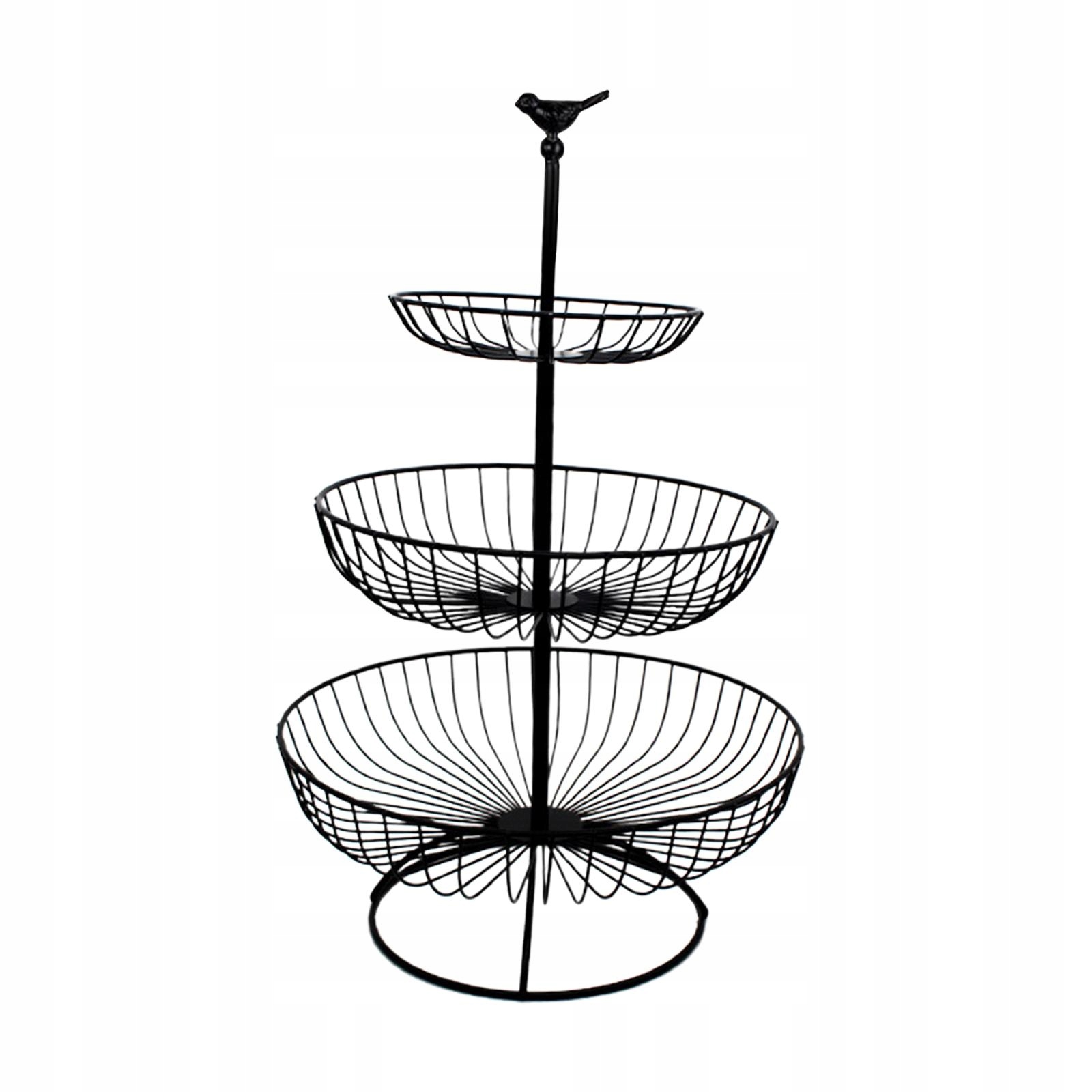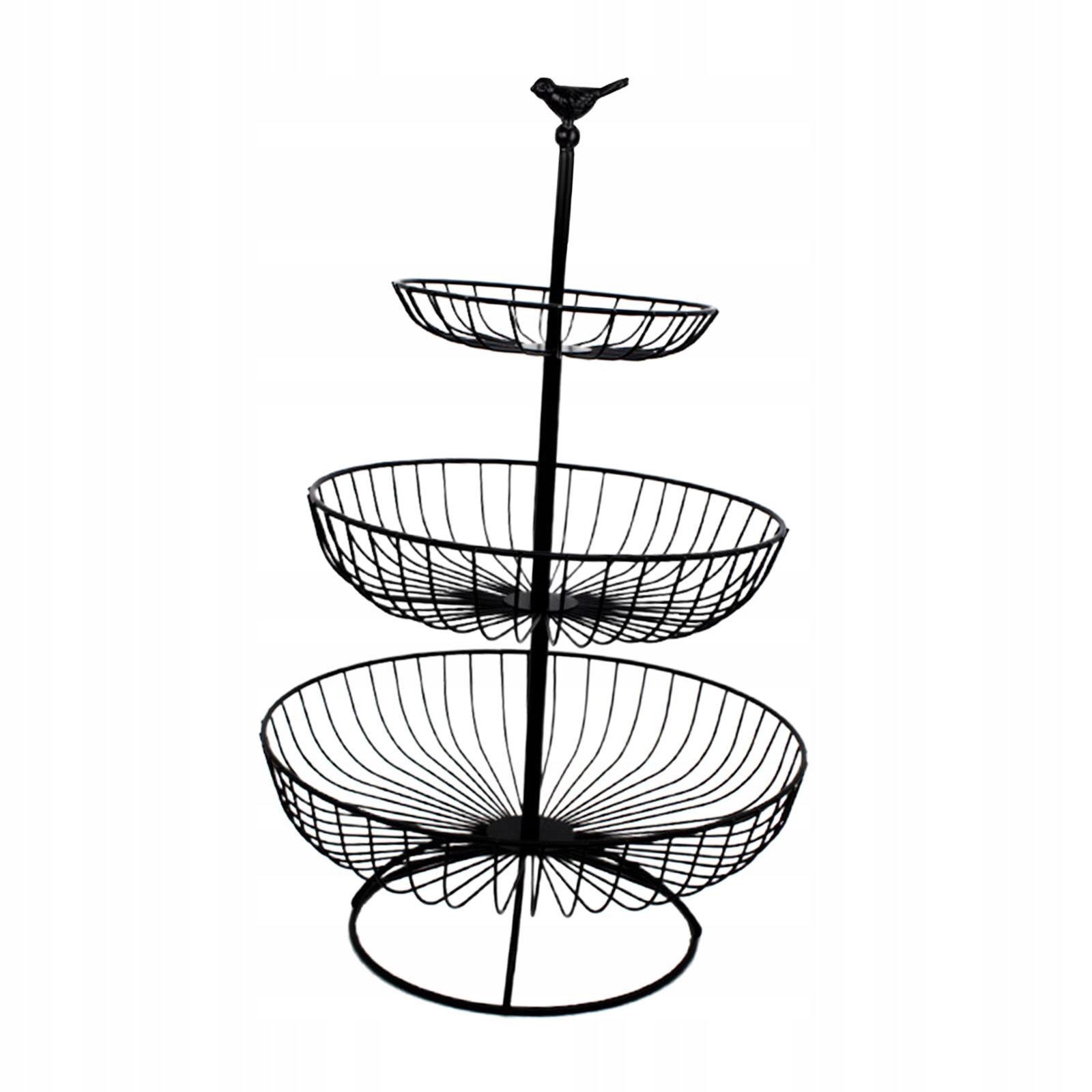 Трехслойная стойка для корзин для овощей и фруктов. Универсальные закуски. Черная верхняя птица