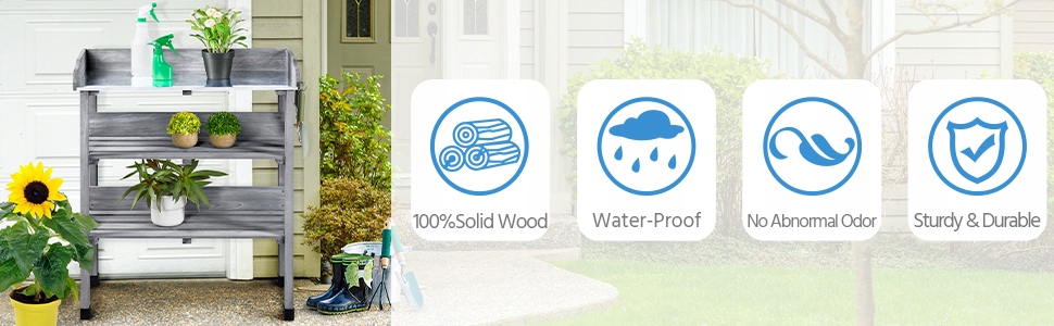 ✅ Идеальный ассистент по саду: У этой рабочей станции в саду есть трехслойная структура, которая обеспечивает больше возможностей и удобства в садоводстве. Вы можете переусердствовать и разрезать ветви наверху и сохранить инструменты, горшки и удобрения на нижних полках. Кроме того, эта скамейка также является идеальной цветочной подставкой.