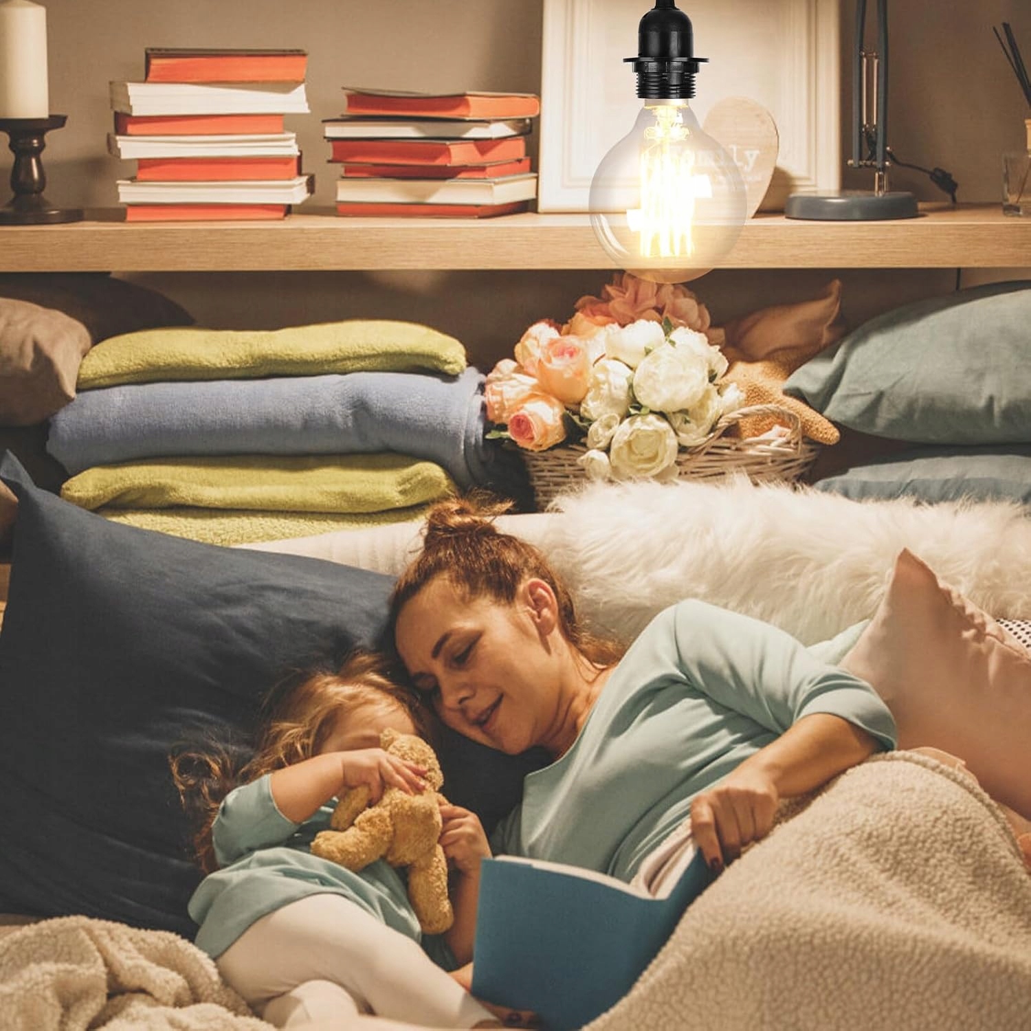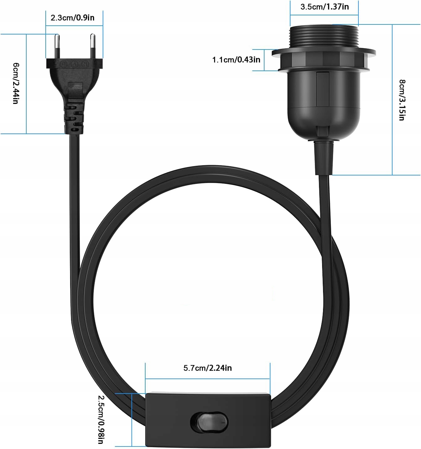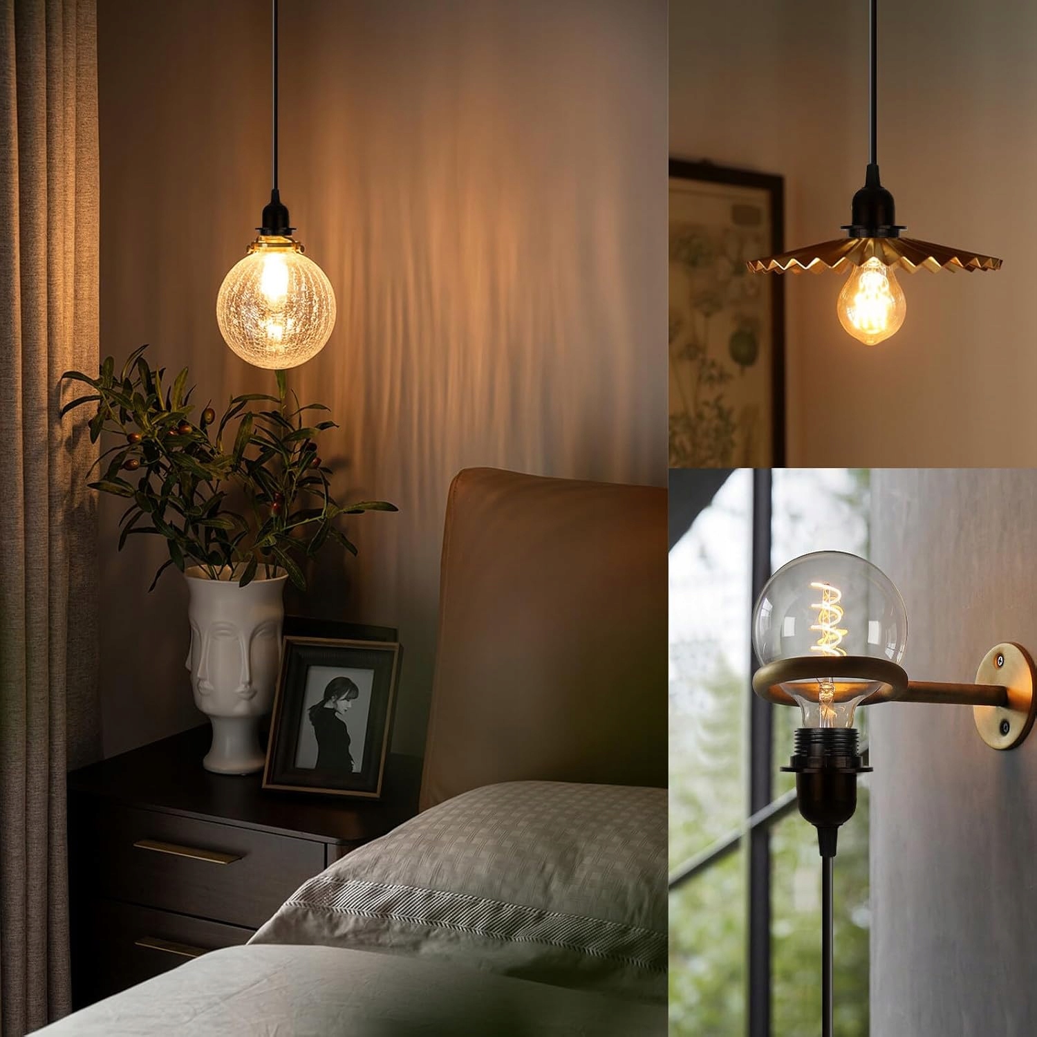 【Регулируемая длина кабеля】: держатель лампы оснащен 3 -метровым кабелем, длина которого идеально подходит для различных мест для сбора. Благодаря съемному гнездам E27 вы можете сократить шнур питания до необходимой длины. Все, что вам нужно, это розетка, чтобы насладиться светом и чувствовать себя как дома