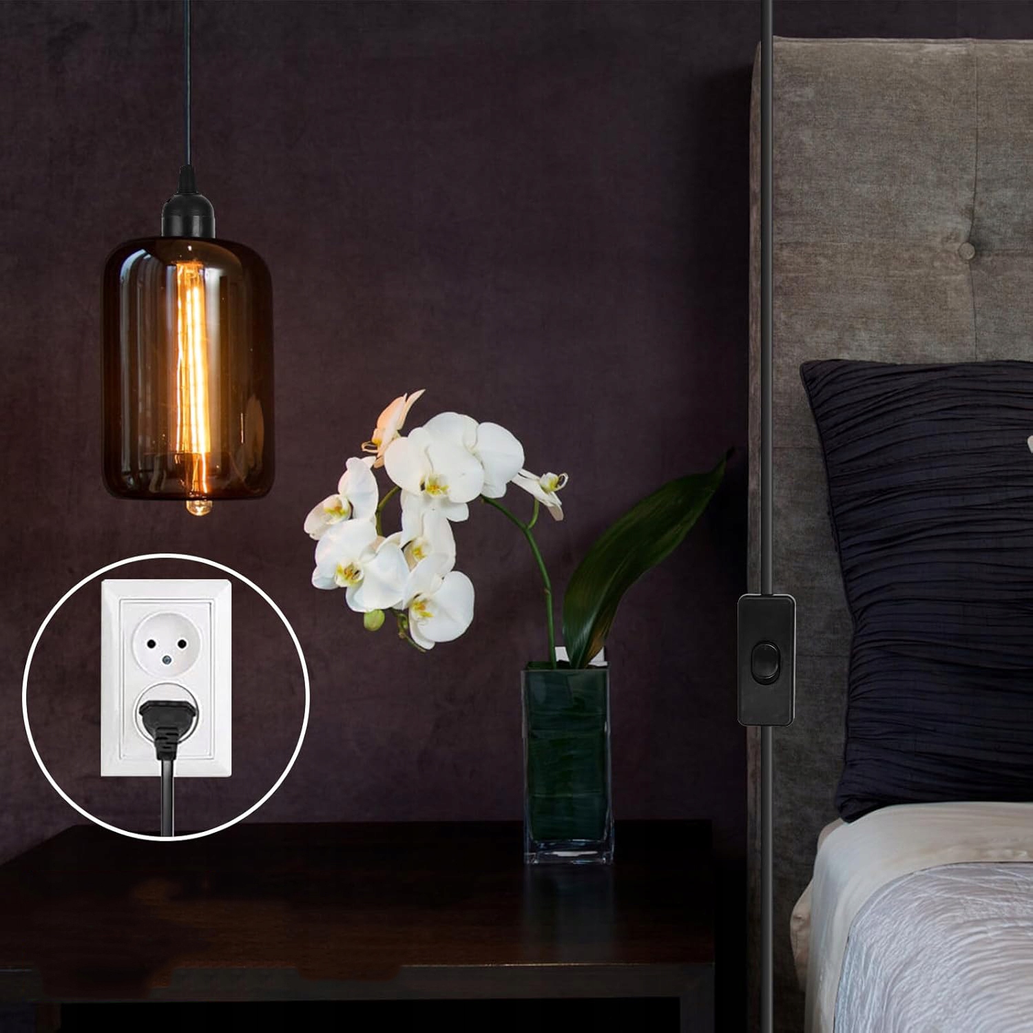 - Держатель лампы оснащен переключателем и плагином, просто прикрутите лампочку с резьбой E27 (не входит в комплект) в рукоятку лампы, подключите пробку в сокет, включите переключатель и готов. Вокруг полков, мебели или повесить на крючок. 3m