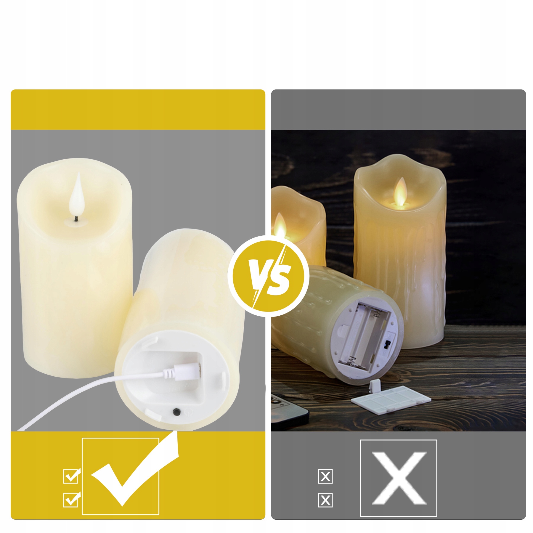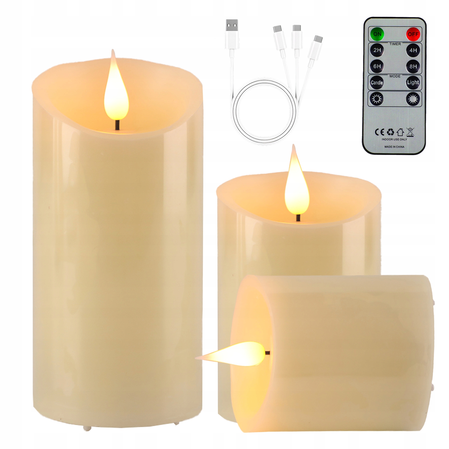 НАБОР СВЕЧЕЙ С ЭФФЕКТОМ СВЕТОДИОДНОГО ПЛАМЕНИ, НАТУРАЛЬНЫЙ ВОСК, 3 ШТ. USB + ПУЛЬТЫ ДИСТАНЦИОННОГО УПРАВЛЕНИЯ