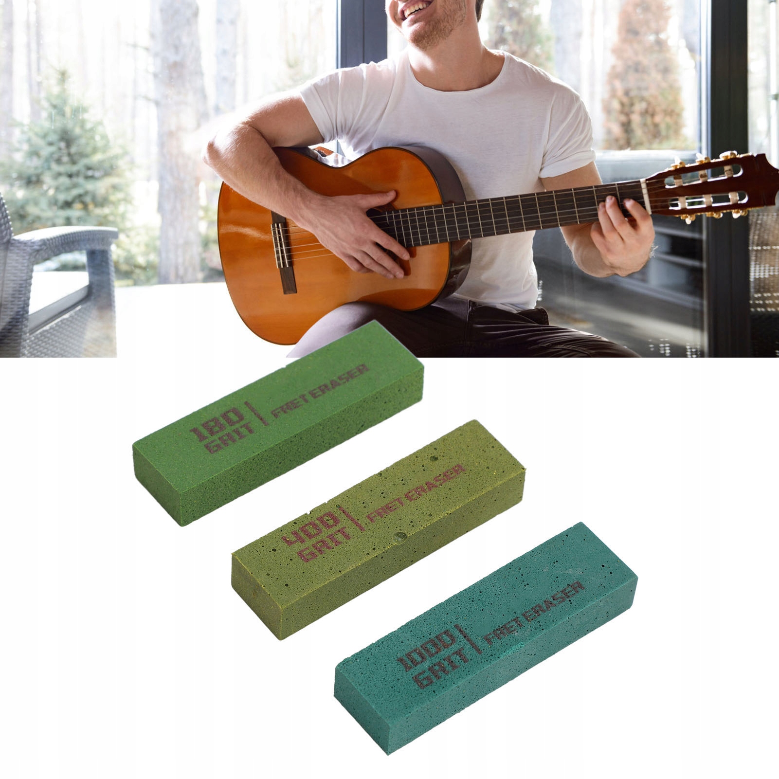 2. Универсальное использование: ластики являются универсальными и могут эффективно решать такие проблемы, как царапины и ржавчина на пороговых значениях гитары и струн. Он подходит для полировки линий персонажей на различных музыкальных инструментах, таких как гитары, бас и гавайская гитара.