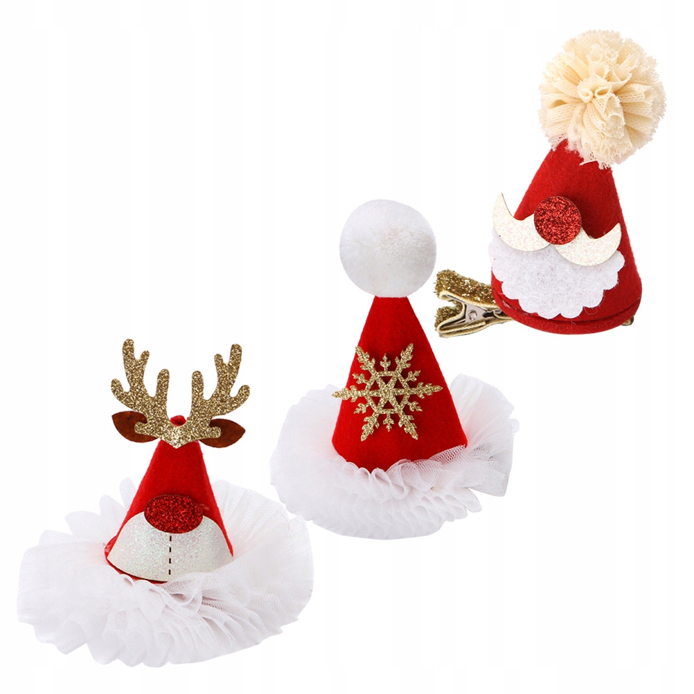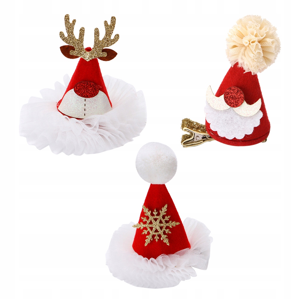 ШЛЯПА САНТА, 3 ШТ. ШАПКА ДЛЯ ВОЛОС, БЛЕСКИЕ ЗАКОЛКИ, ШПИЛЬКА ДЛЯ ВОЛОС С АЛЛИГАТОРОМ C