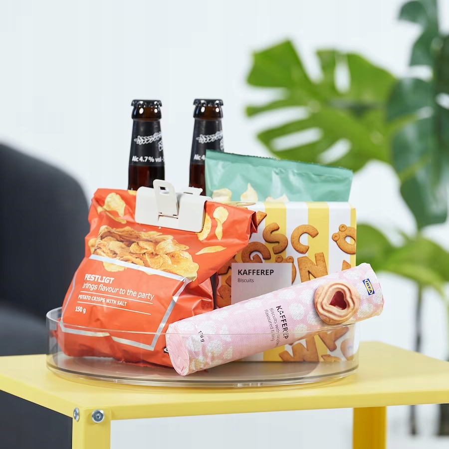 Откройте для себя поворотную подставку KLIPPKAKTUS – идеальное решение для организации пространства на вашей кухне. Благодаря вращению на 360° вы получаете легкий доступ к хранящимся продуктам, что значительно облегчает повседневное использование холодильника или шкафов. Более высокие края подставки эффективно удерживают предметы на месте даже при вращении. Максимальная нагрузка 5 кг делает изделие одновременно практичным и долговечным.