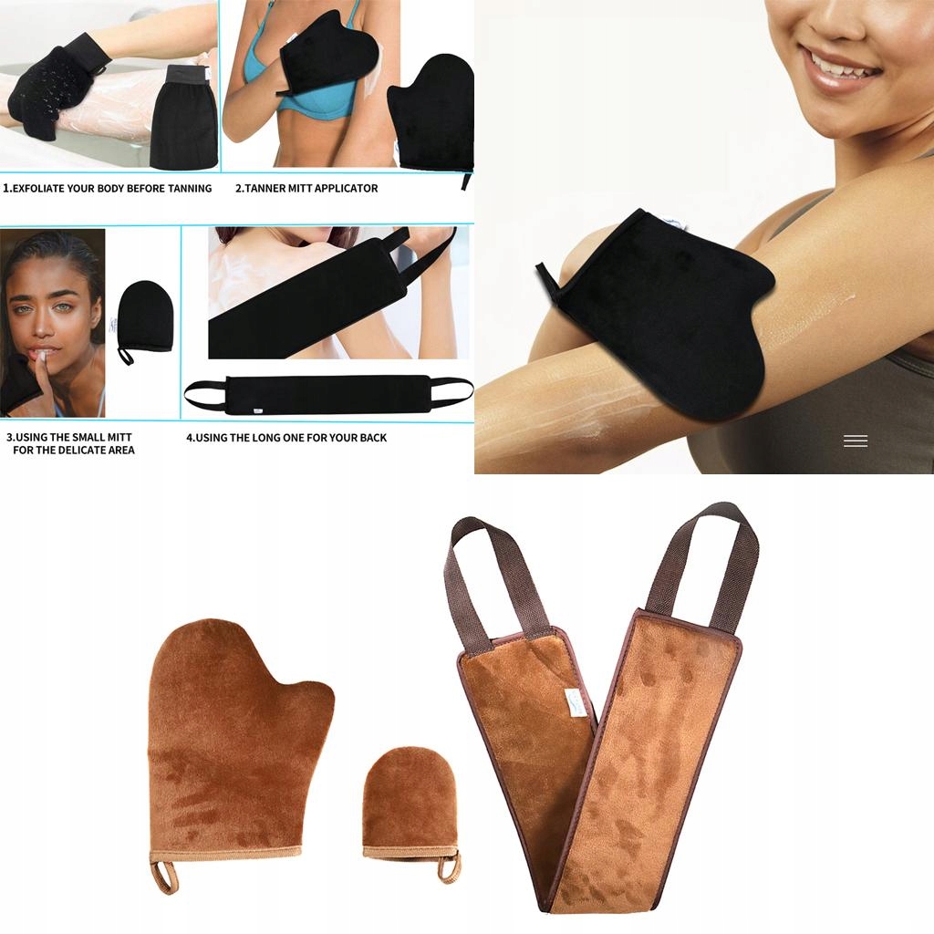 Доступны двусторонние для нанесения автозагара, моется, его можно использовать обеими руками, легко наносить лосьон для тела.