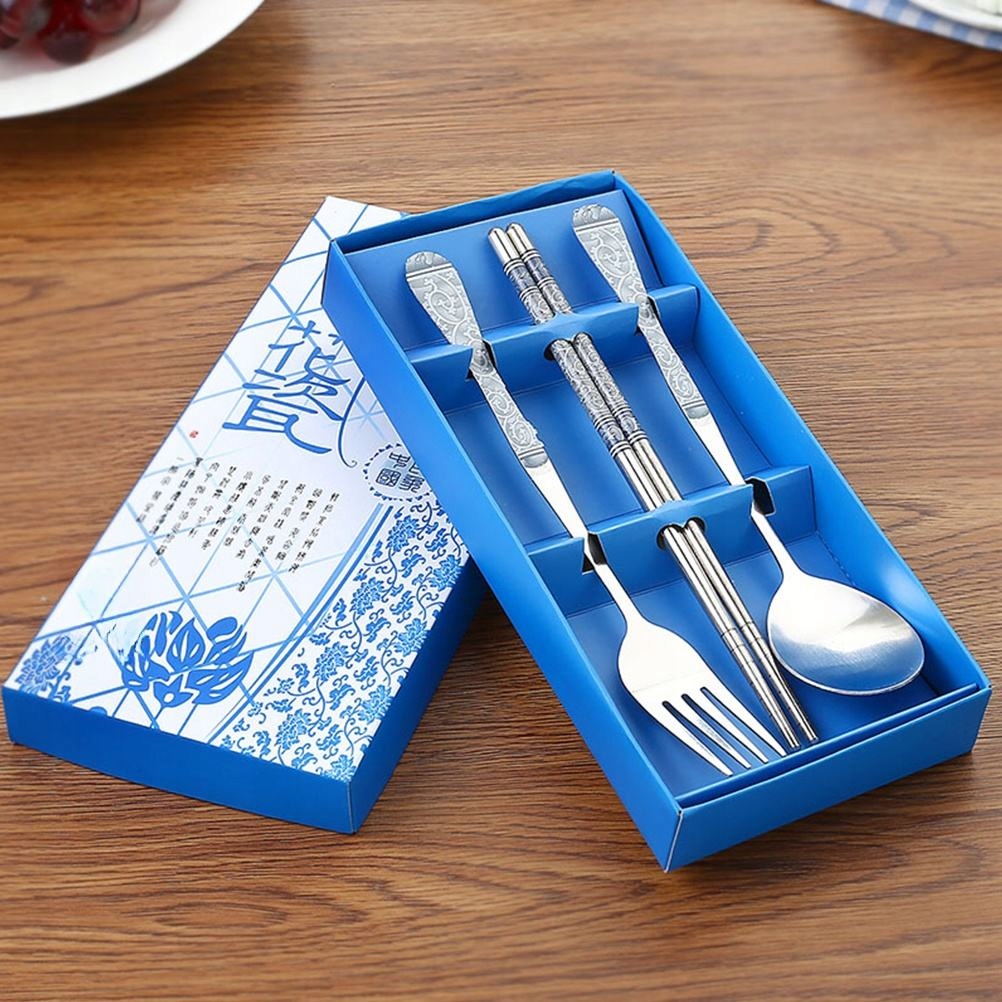 ✅Нержавеющая сталь, 3 шт. набор (ложка, вилка и палочки для еды)Отлично подходит для путешествий.