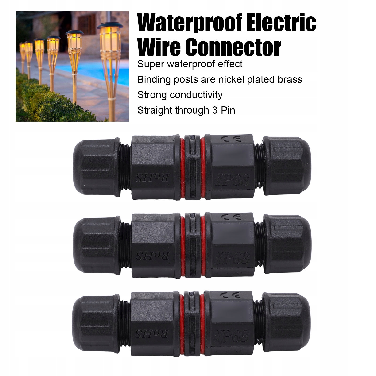 3 шт. водонепроницаемый кабельный разъем 3-контактный прямой IP68 водонепроницаемый разъем для наружных светодиодных фонарей