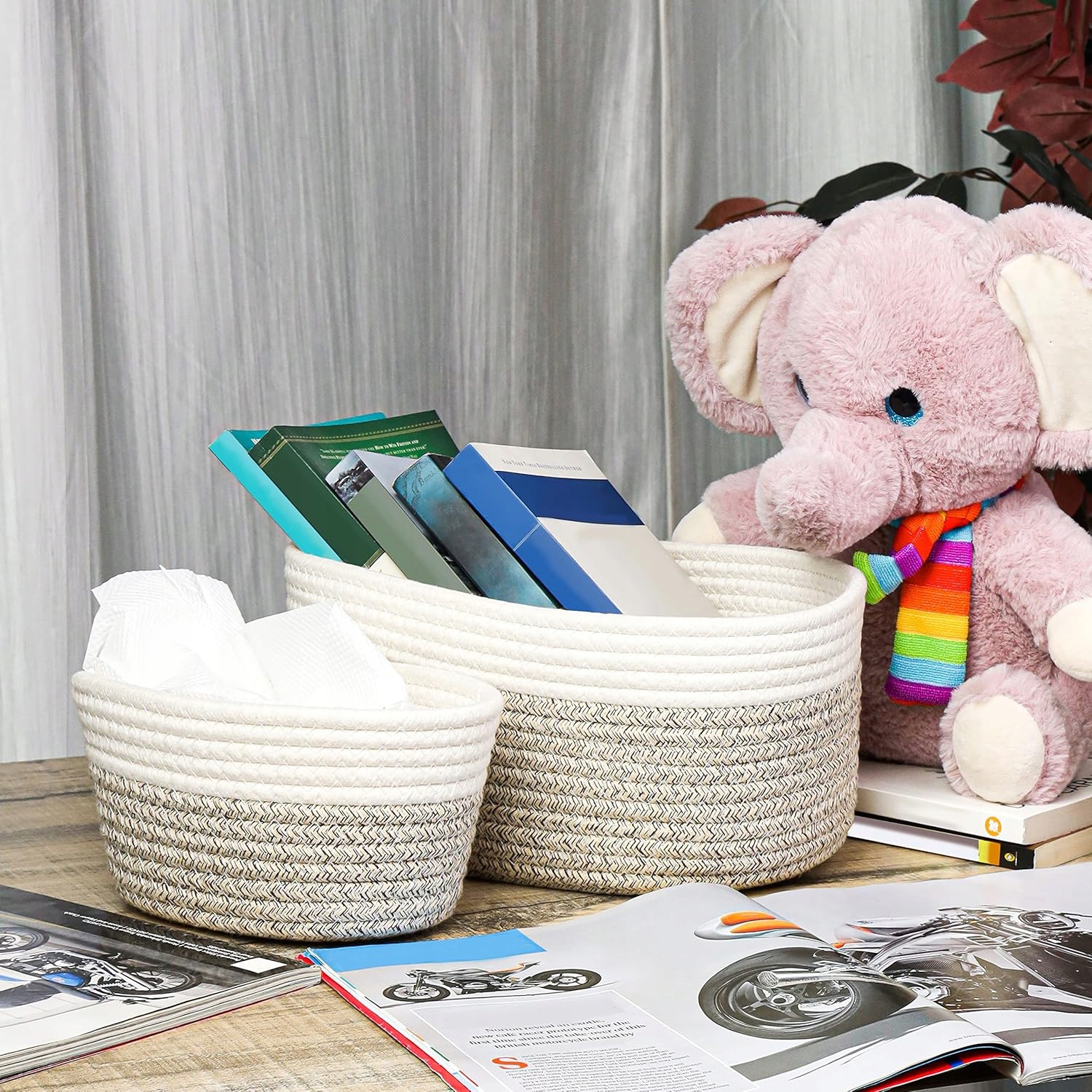Натуральный материал: Наши универсальные корзины изготовлены из натурального хлопка, не содержащего химикатов; Материал без запаха подходит для переработки, мягкий к ощущению и долговечен; Каждая легкая корзина имеет твердую, твердую основу, поэтому вы можете легко перемещать ее в другие комнаты