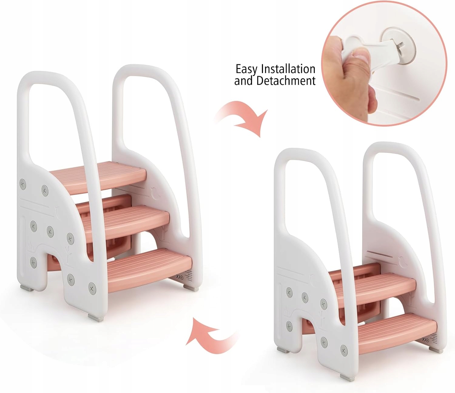 - Установка и портативная конструкция: оснащены подробными инструкциями и всеми необходимыми аксессуарами, десять 3-ступенчатых табурет, которые можно легко сложить. Кроме того, можно разрешить доступ к месту пребывания. Поддержка независимости детей