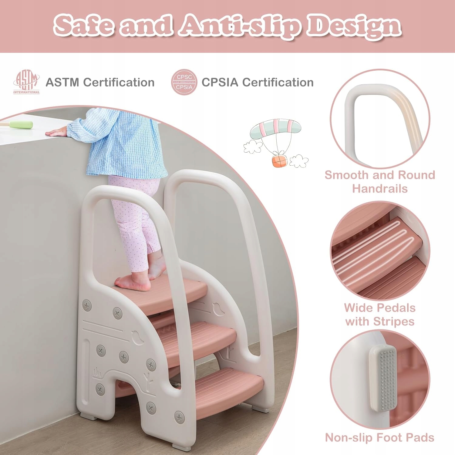 - Чрезвычайно стабильная структура: десять стула для маленьких детей используют тройную защиту против SLIP. Анти -скользящие уровни сочетания со структурой модулей, посвященных вопросам и безопасности. Не -скользящие поручки и ноги предотвращают скольжение во время использования. В другом с другой без версии опорной пластины наша 3-ступенчатая лестница имеет усиленную заднюю пластину. выход. Аккуратно округлые края не привлекают более глубокую кожу малыша. Удобные, поручны, легко схватить при входе и спуска