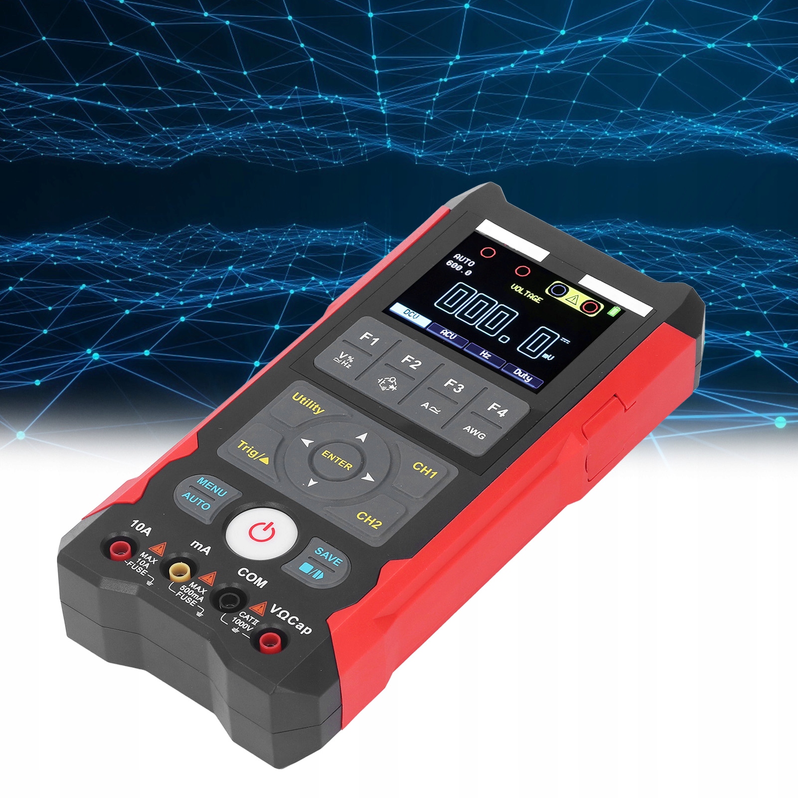 5. Защита цепи: цифровой осциллограф оснащен двойными предохранителями на 500 мА и 10 А с защитой от перегрузки и автоматически отключается без работы в течение 15 минут.