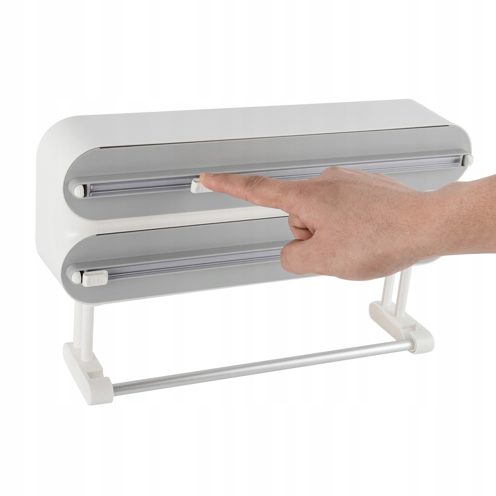 Экономия места: Конструкция 3-в-1 вмещает пищевую пленку, алюминиевую фольгу и рулон бумажных полотенец для легкого доступа, а также настенный дизайн и компактную конструкцию, экономя много места на вашей кухне. Это хороший помощник на кухне.