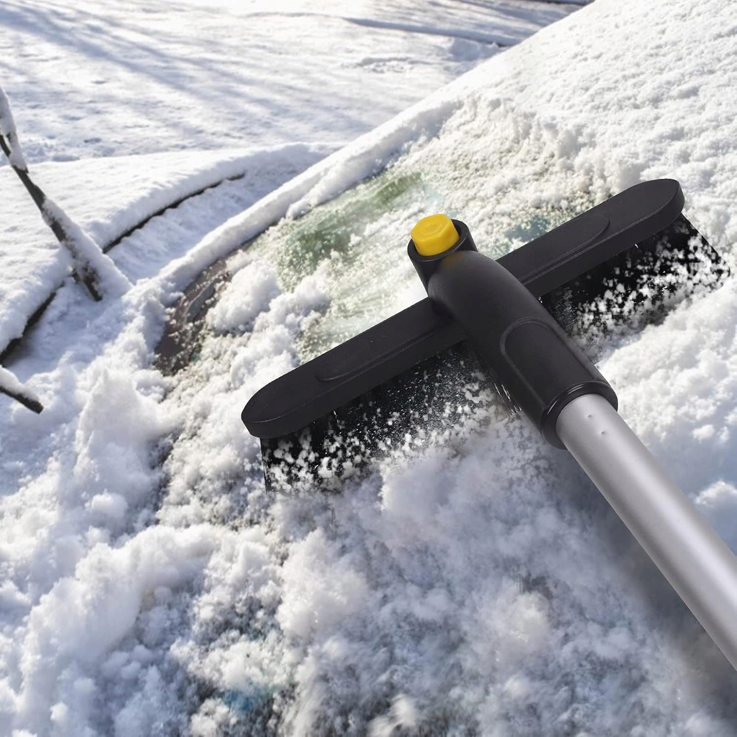 состоит из 3 частей: снежные щетки + ледовые скребки + стержень. Когда он не используется, его можно удалить и легко хранить в автомобиле.