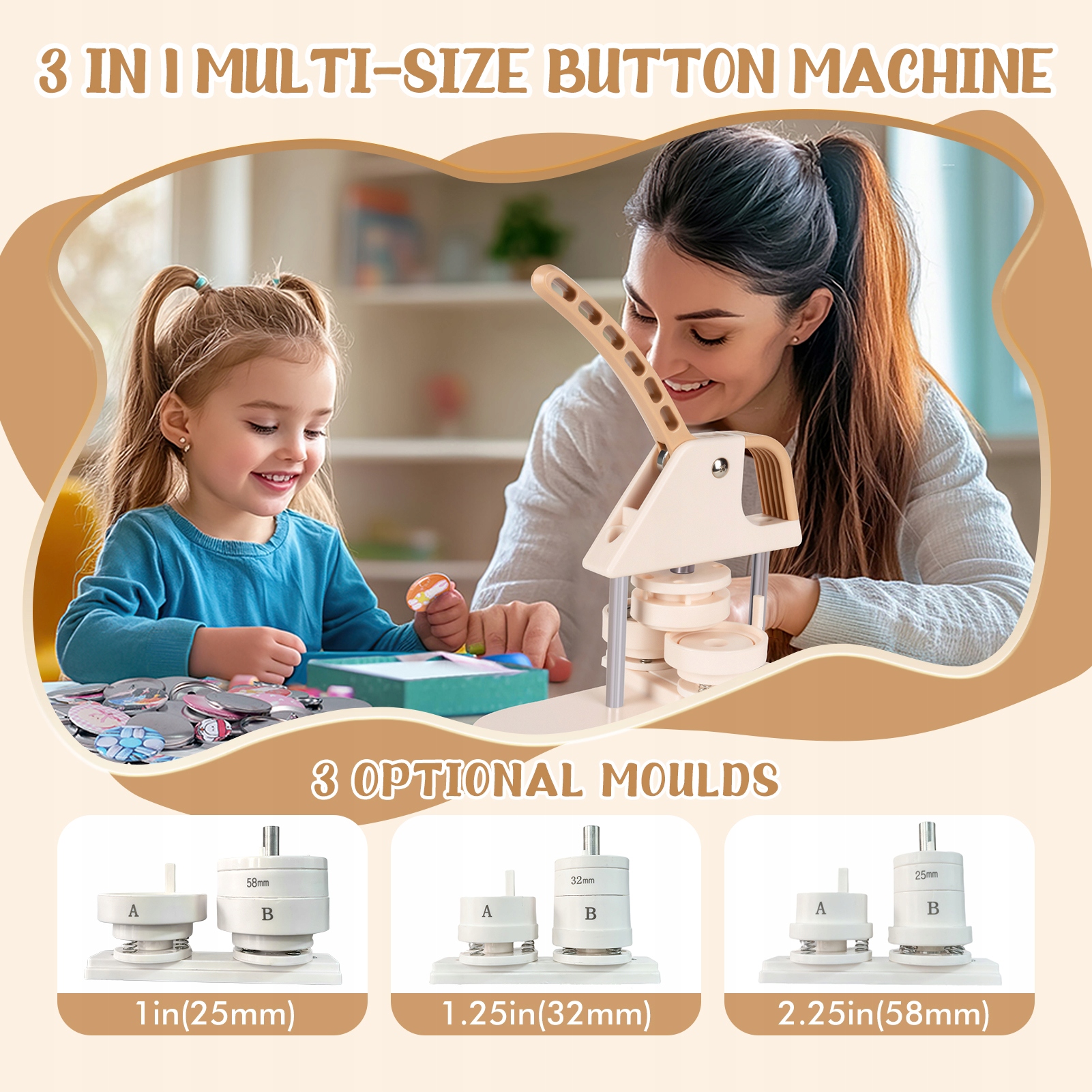 3 в 1 DIY PIN -кнопка Maker Machine 25/32/58 мм Знак Нажмите машину с 300 частями кнопок