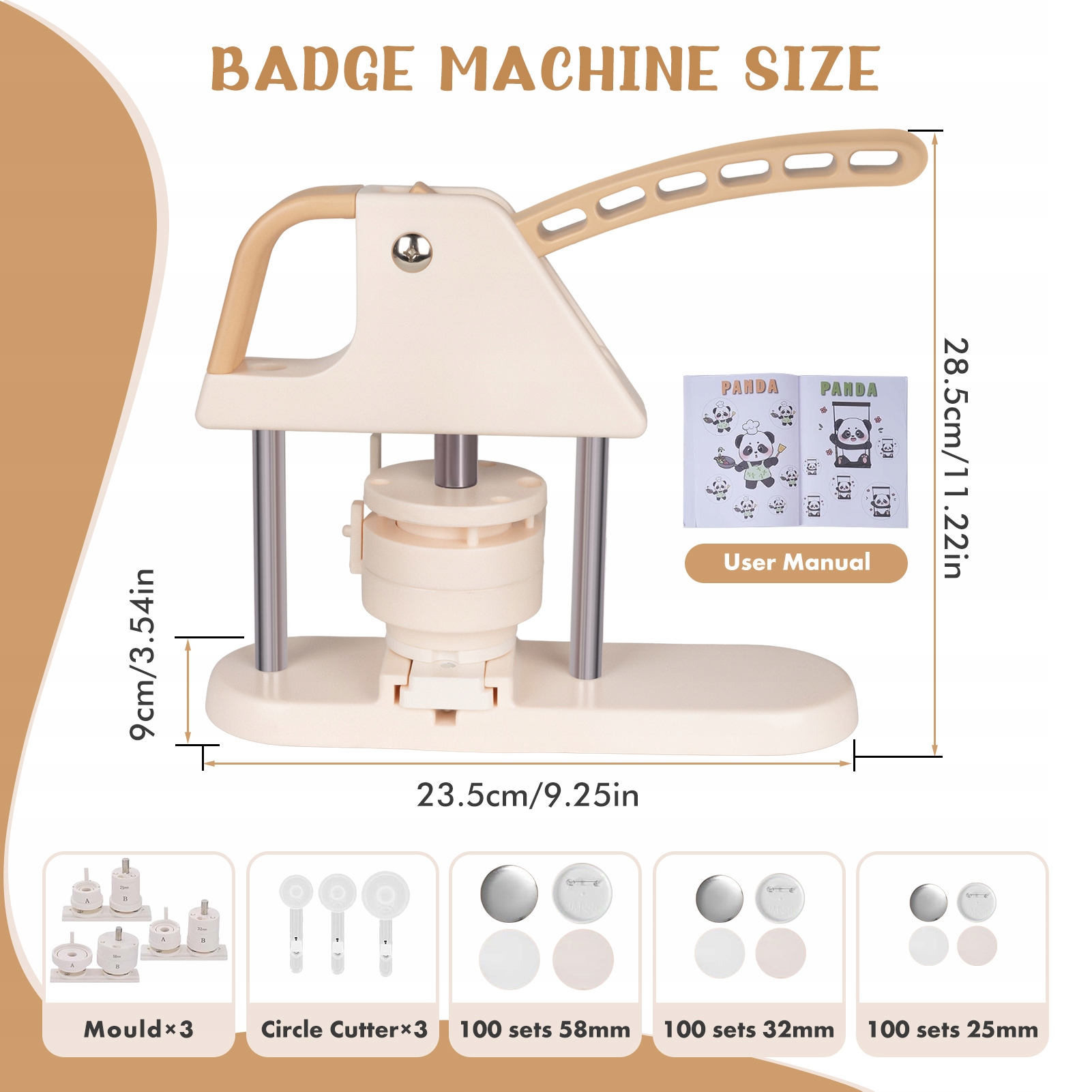 4. Улучшенная версия три в одном: DIY 25/32/58 мм тип машины для создания значков, которые можно использовать для изготовления небольших подарков, таких как табличка с булавкой, зеркалом, ножом, вешалкой, цветом розетки, кольцом ключа и так далее. Откройте для себя различные размеры только с одной машиной!