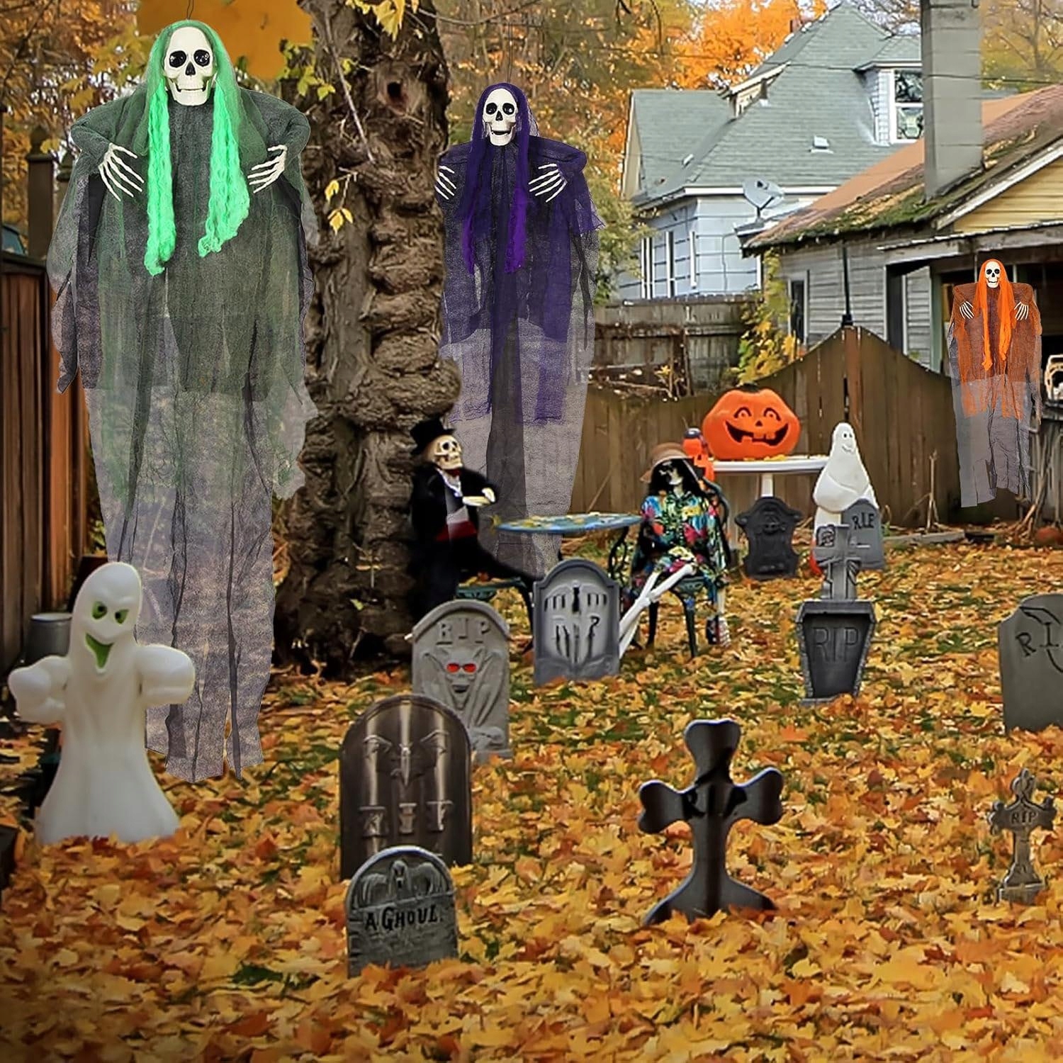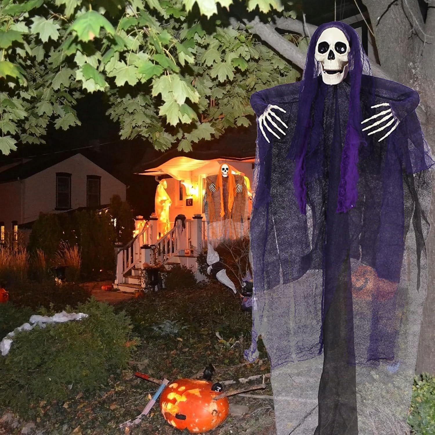 👻 ШИРОКОЕ ПРИМЕНЕНИЕ: Украшение на Хэллоуин «Великий Мрачный Жнец» для тематической вечеринки в честь Хэллоуина, украшения в помещении и на открытом воздухе или украшение дома с привидениями! Повесьте их на дереве, окне или на тропинке, мимо которой пройдет посетитель.