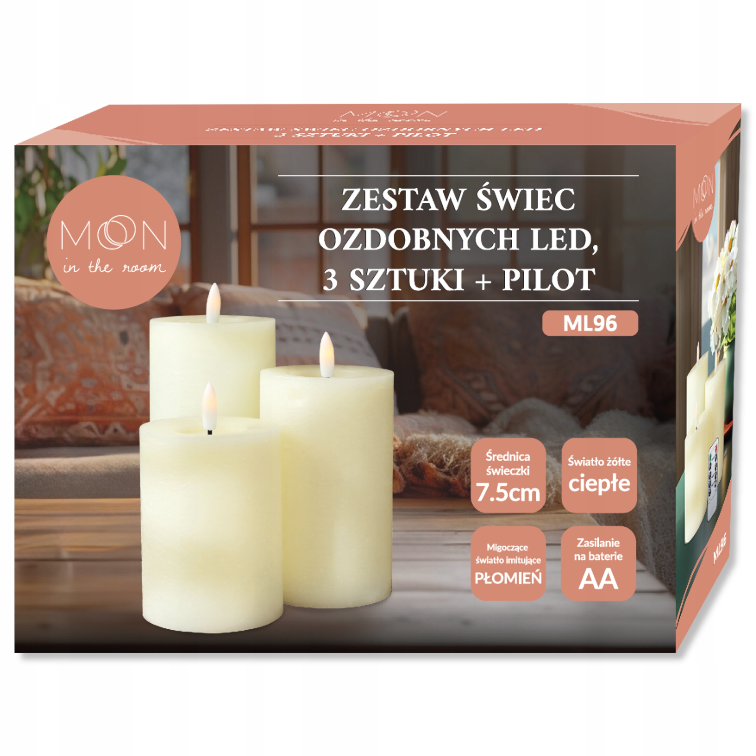 3 ŚWIECE ŚWIECZKI OZDOBNE LED DEKORACYJNE ŚWIĄTECZNE DEKORACJA + PILOT