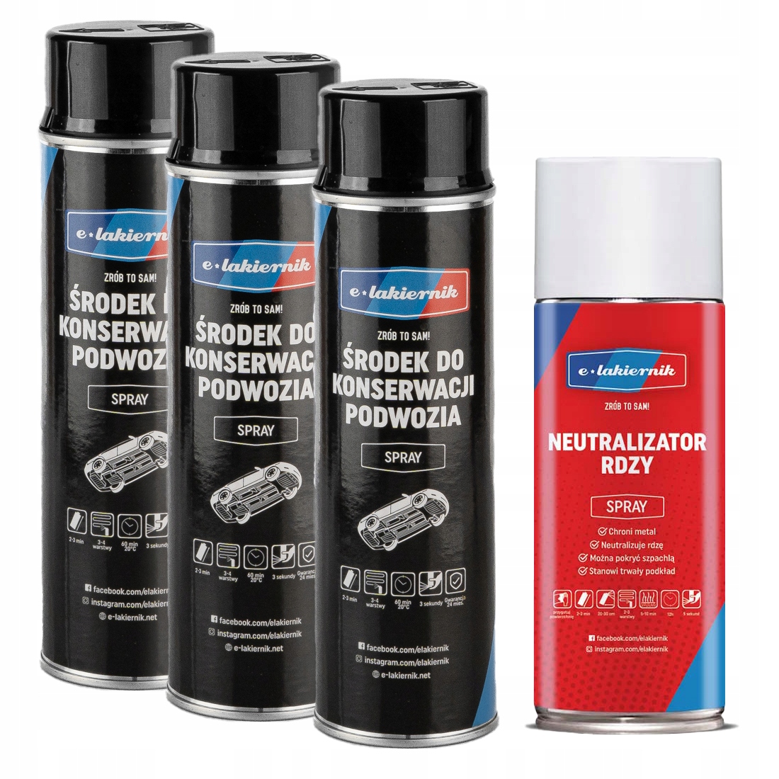 3 x e-Lakiernik Chassis Maintenance Agent 500 мл + нейтралізатор іржі