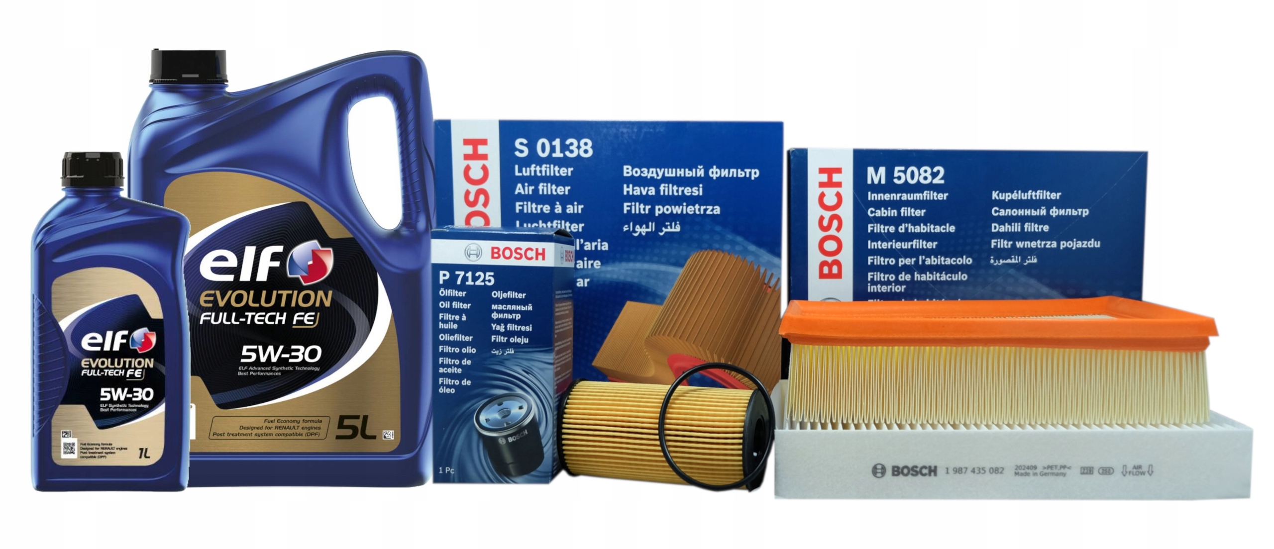 3 x Filtr Bosch + olej 5W30 Elf Full Tech Renault Scenic / Grand 3 1.6 dCi