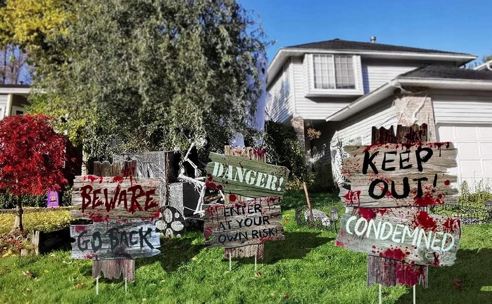 Эта доска создает чудесную жуткую атмосферу на вечеринках в стиле ужасов. Предупреждающий знак Хэллоуина имеет вид изношенного дерева, с пятнами крови и многочисленными предупреждениями. Разместите его в своем саду и легко создайте ужасающую сцену ужасов в ночь на Хэллоуин. Подходит для многих сценариев