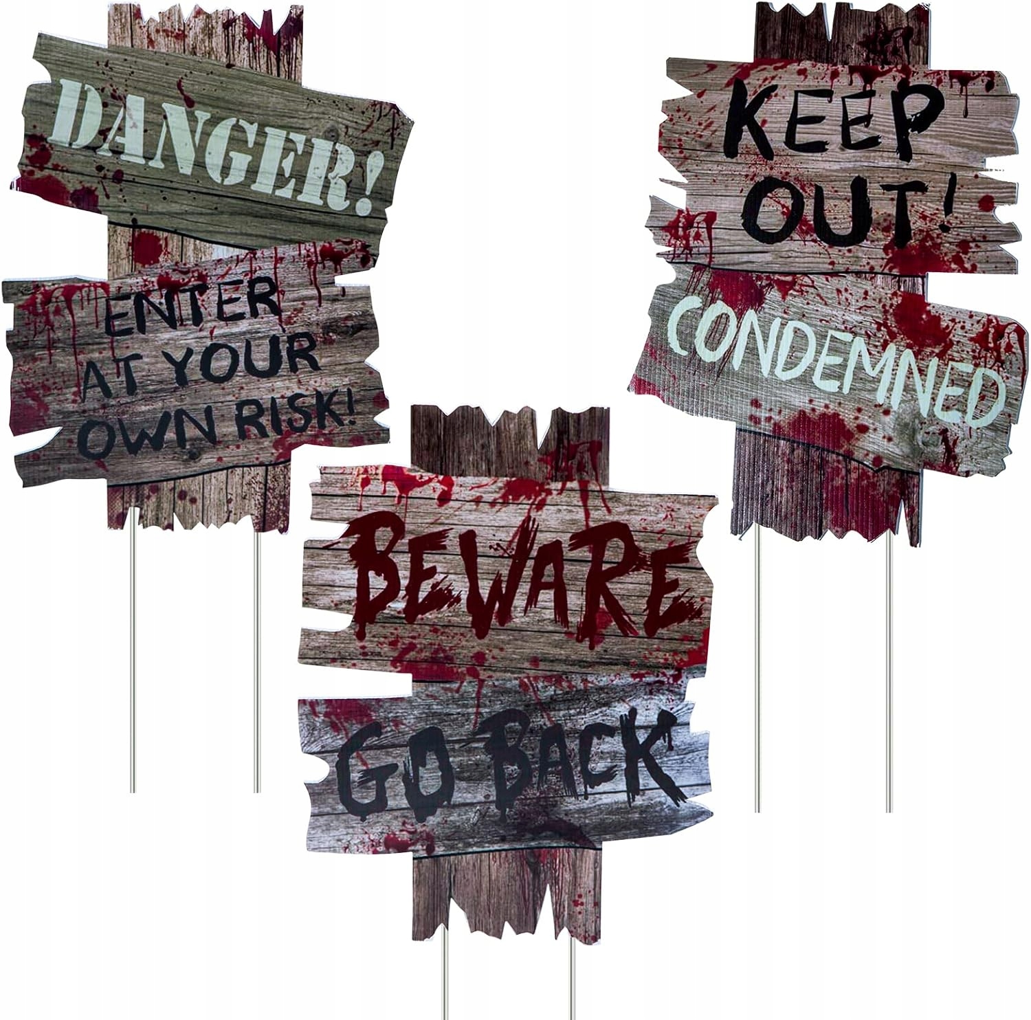 3 X ПРЕДУПРЕЖДАЮЩИЙ ЗНАК УКРАШЕНИЕ ХЭЛЛОУИН ОРНАМЕНТ ЗОМБИ УЖАС