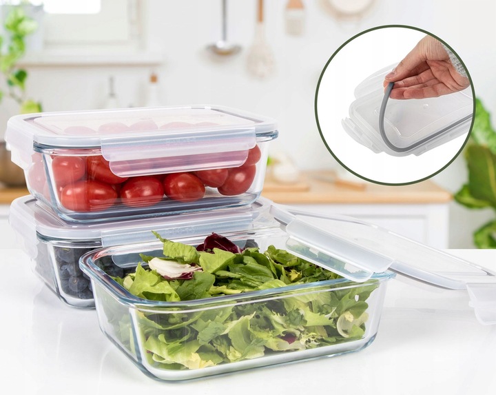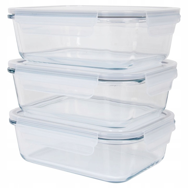 3 x СТЕКЛЯННЫЙ КОНТЕЙНЕР ДЛЯ ПИЩЕВЫХ С КРЫШКОЙ 400 мл 1000 мл 1500 мл прямоугольный