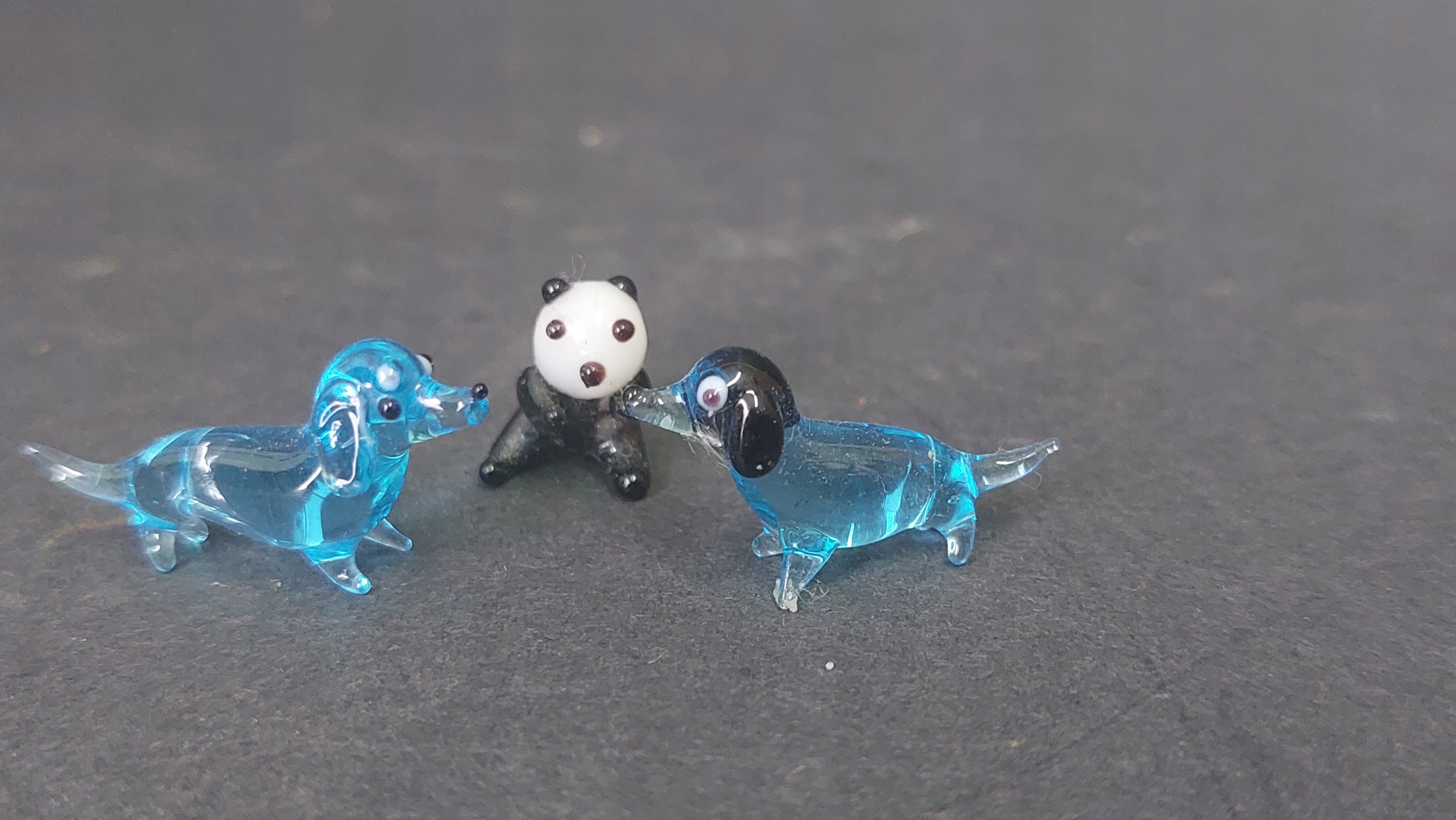 3 x szklane miniaturki zwierząt figurki Jamnik Panda design