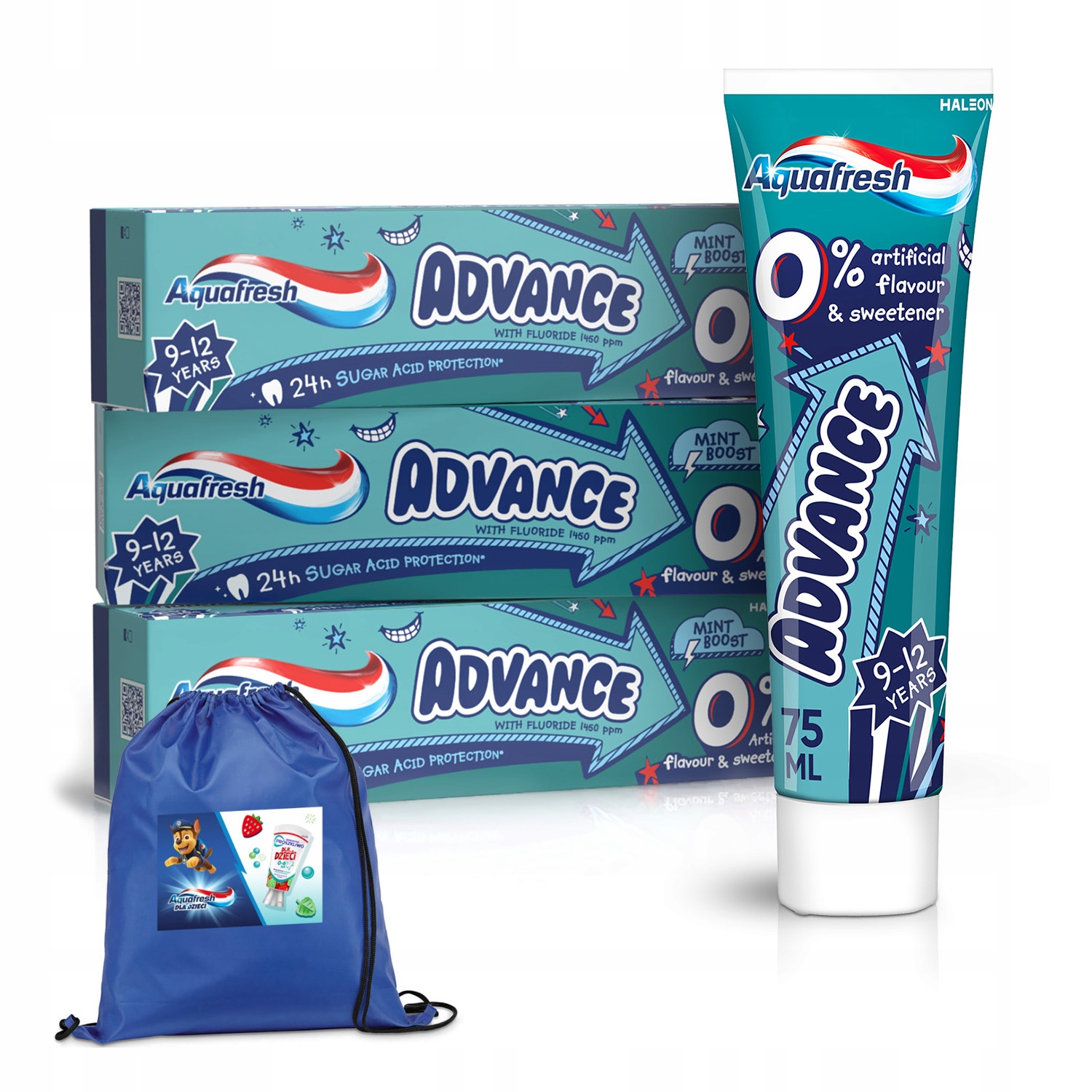 3 x Зубная паста Aquafresh Advance с фтором для детей 9-12 лет 75мл + рюкзак - пакетик БЕСПЛАТНО!