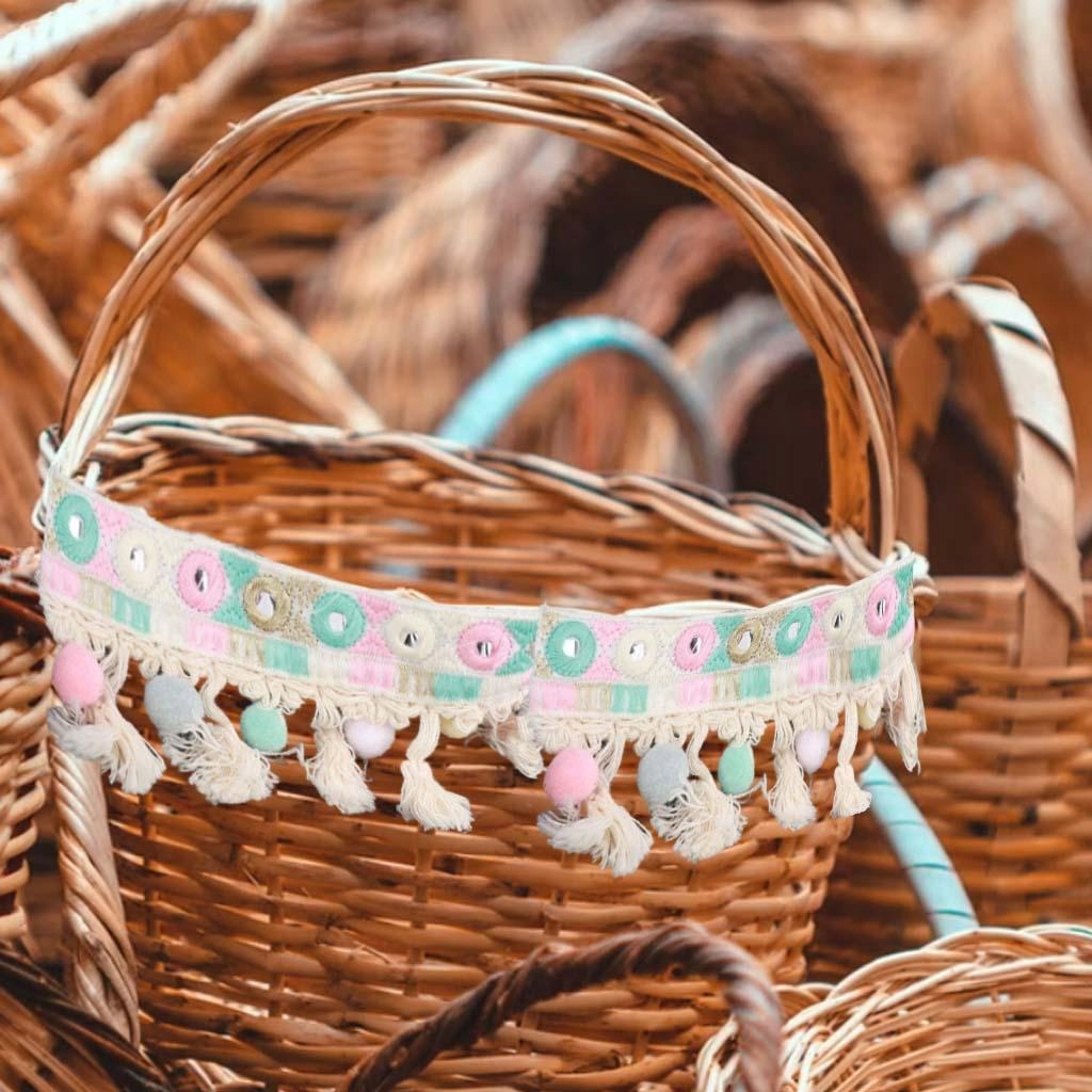 Жаккардовая лента в национальном стиле с кистями с бахромой