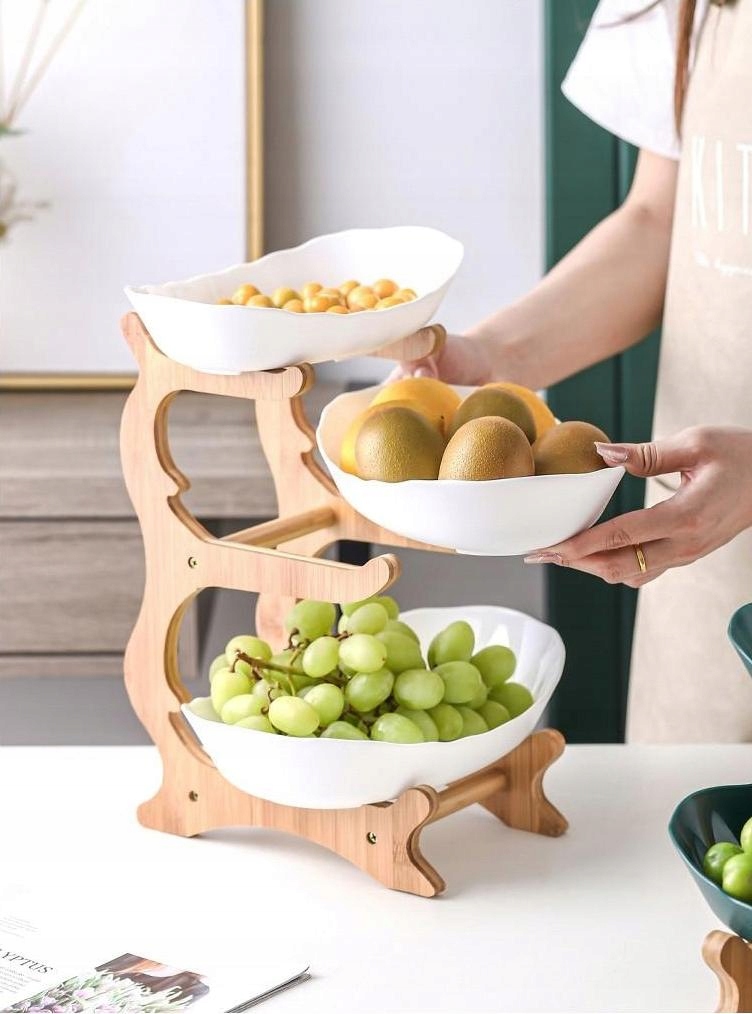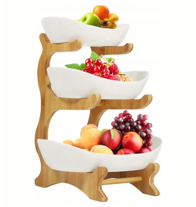 Ваза для фруктов, 3-х ярусная, с подставкой из натурального бамбука, тарелка для подачи фруктов, тортов, сладостей