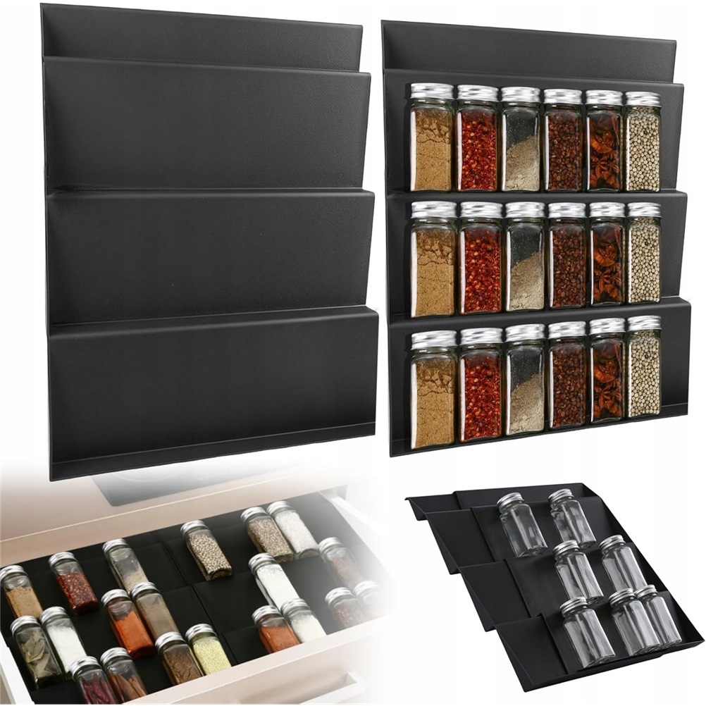 Когда вы открываете ящик для специй, все специи хорошо видны. Наклонные уровни позволяют быстро прочитать этикетки на бутылках, определить содержимое и найти нужные вам продукты. Идеально подходит для хранения и организации консервов, варенья, чая и другой кухонной утвари.