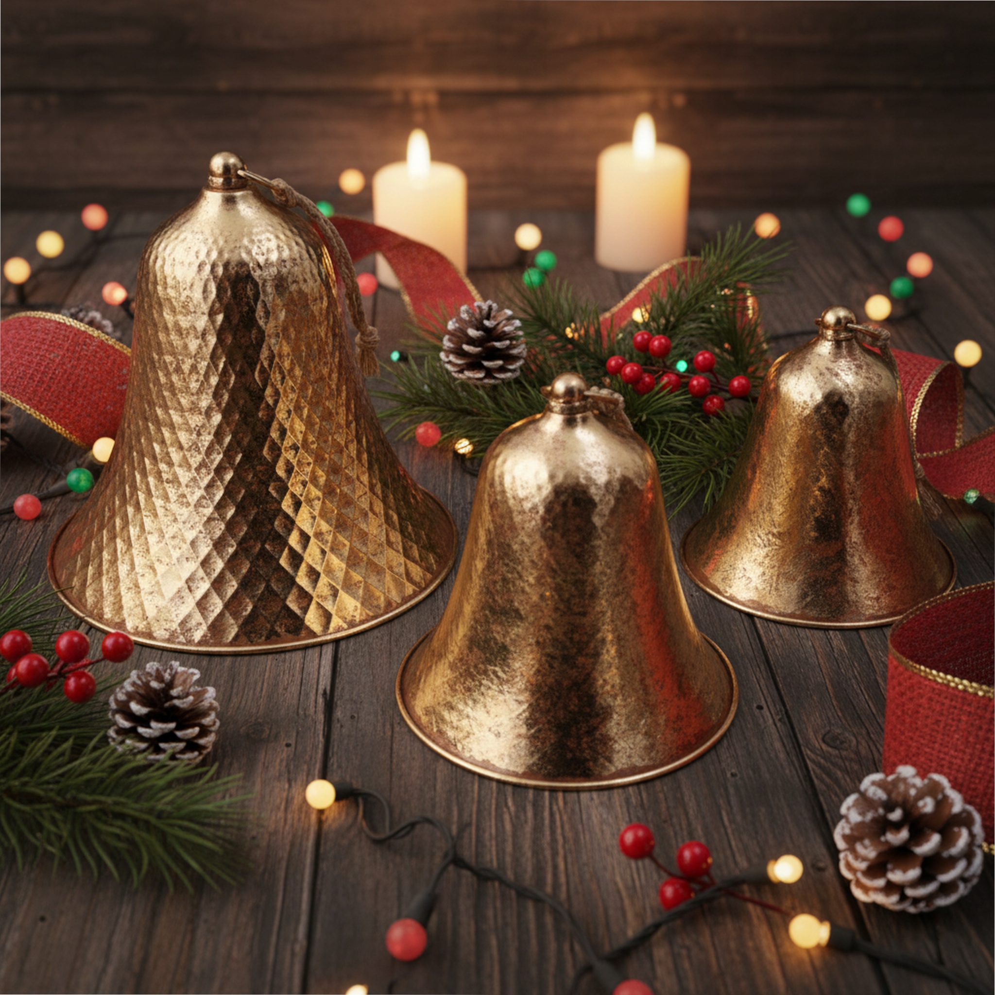 Этот набор из трех колокольчиков разного размера — воплощение рождественского очарования, которое добавит блеска любому пространству.