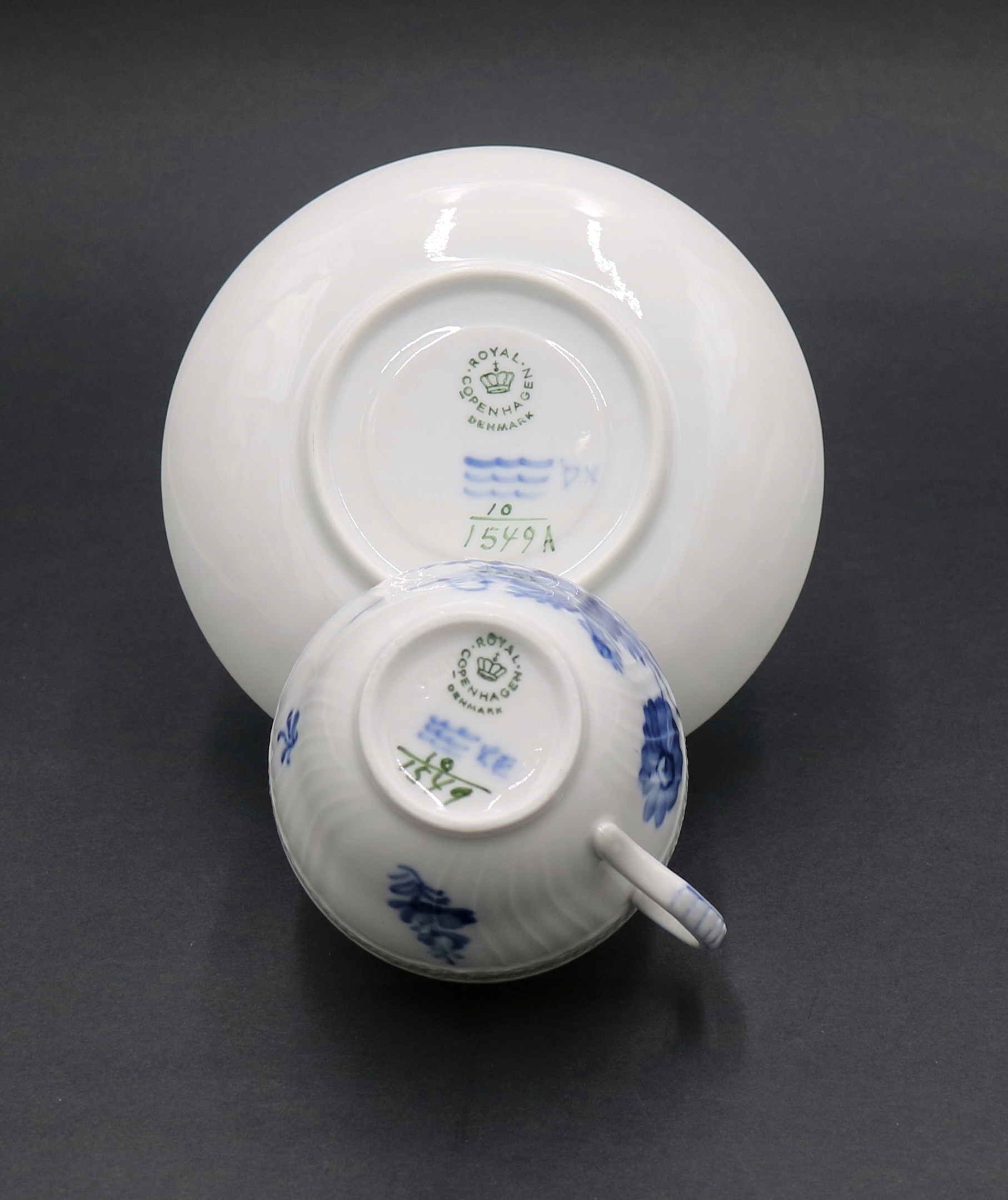 Три волны до сих пор нарисованы на каждом фарфоровом изделии, изготовленном на Королевской копенгагенской фабрике. Другая часть подписи — королевская корона, символизирующая происхождение компании. Первоначально корона расписывалась вручную, но с 1870-х годов этот знак создавался с помощью подглазурного штампа. Корону дополнительно украшает «Крест Дагмары» — средневековое распятие с драгоценными камнями, обнаруженное в 1690 году.