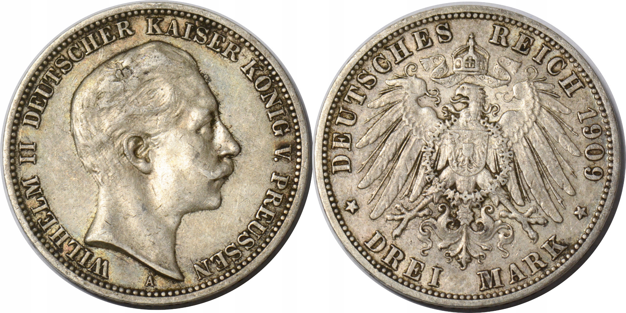 3. ГЕРМАНИЯ ПРУССИЯ ВИЛЬГЕЛЬМ II 3 МАРКИ 1909 ГОДА СЕРЕБРО 29/10