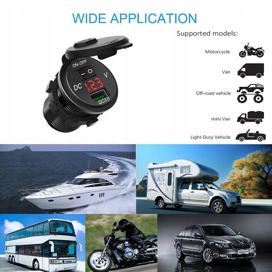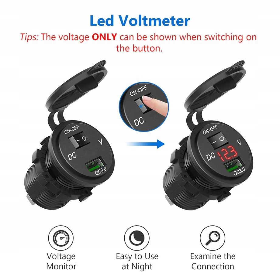 3.0 USB ЗАРЯДНИЙ ПРИСТРІЙ З ВОЛЬТМЕТРОМ G вкл/викл