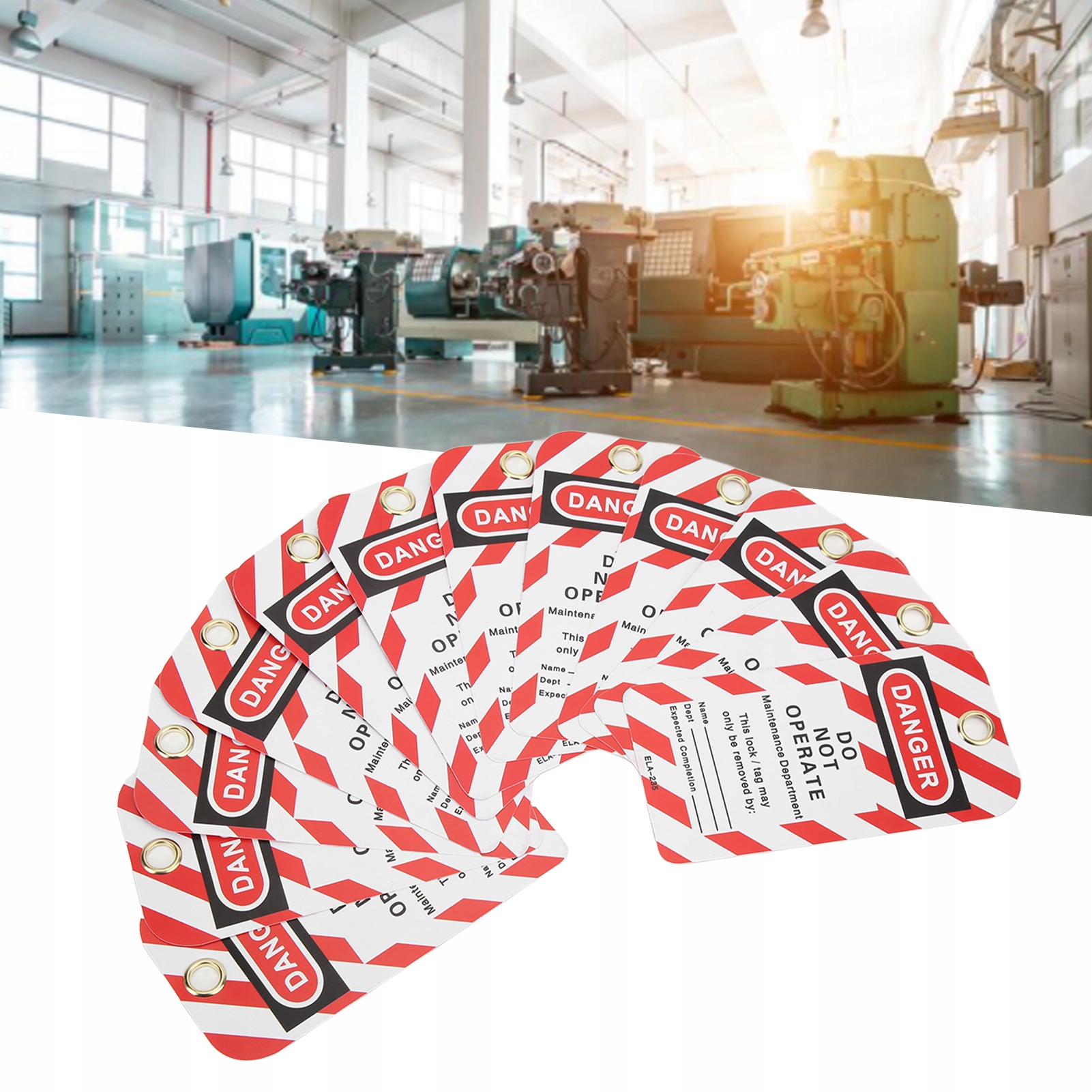 5. Конструкция с металлическим подвесным кольцом: предупреждающая бирка с блокировкой премиум-класса оснащена подвесным кольцом, которое более прочно фиксируется и его нелегко порвать.