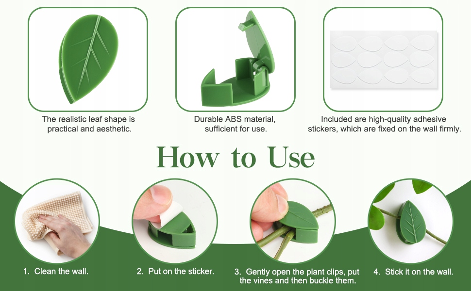 - Зажимы для растений имеют форму листа и зеленый цвет.