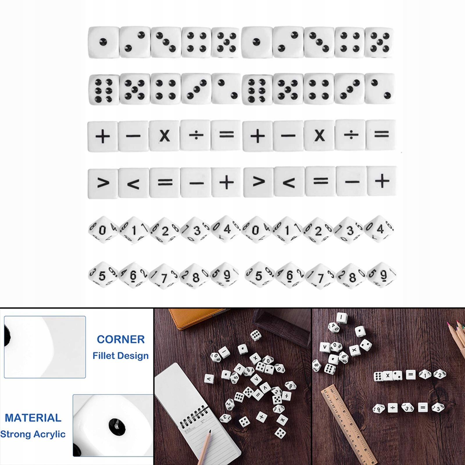 30 предметов реквизита для математических игральных костей