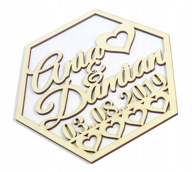30 -сантиметровый шестигран с именами и свиданием свадьба RT23