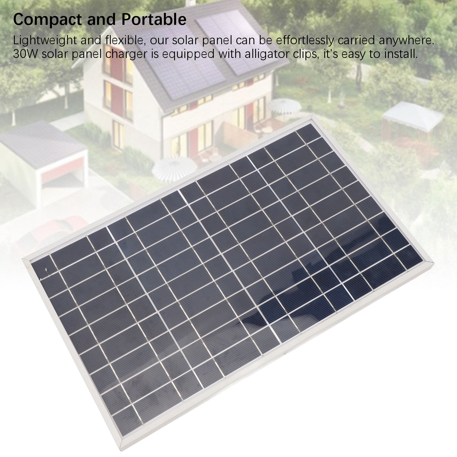4. Компактный и портативный: легкий и гибкий, наша солнечная панель можно износить где угодно. Зарядное устройство для солнечной батареи 30 Вт оснащено зажимами аллигатора, его легко установить.