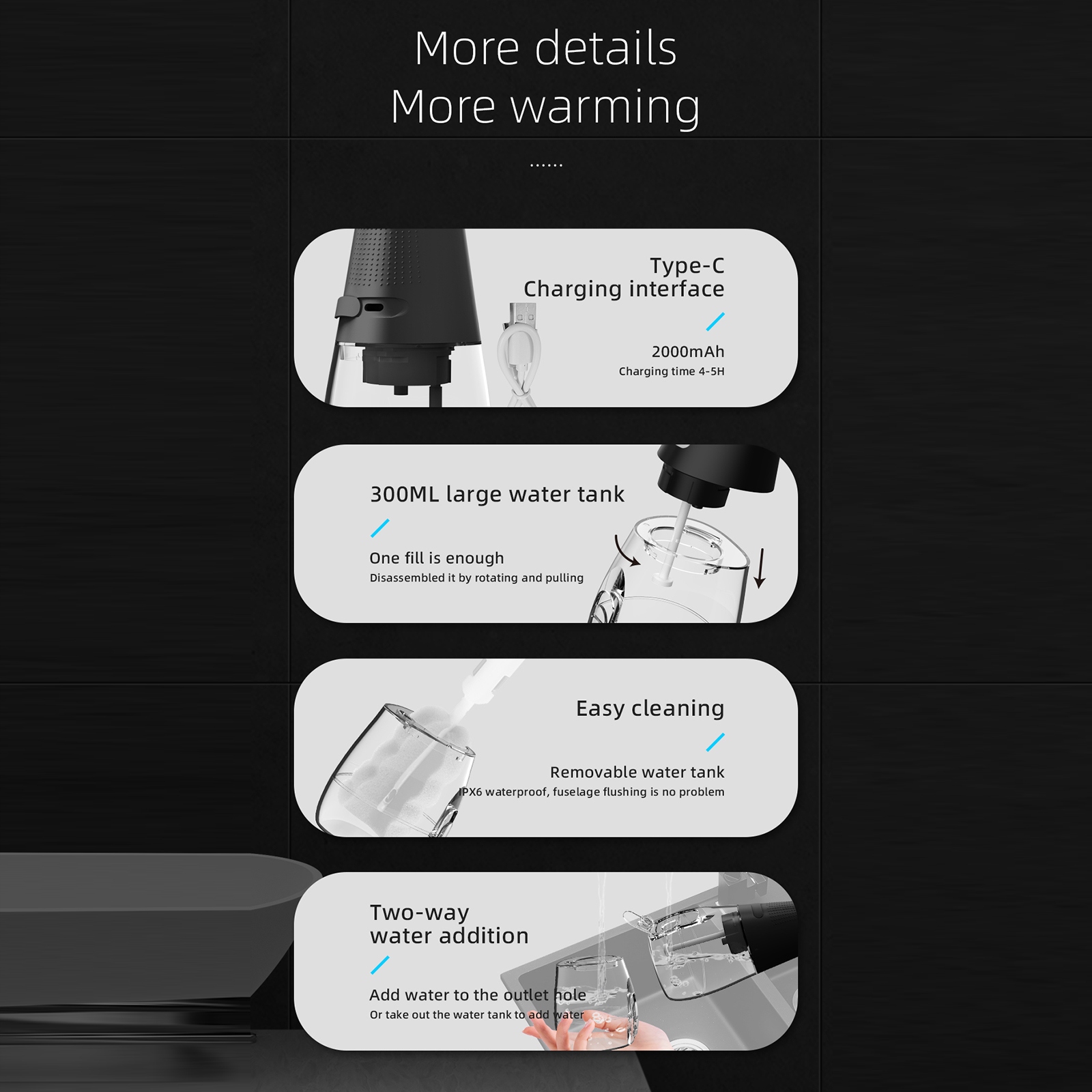 1. 300 мл резервуара для воды, большая вместимость, удовлетворяет потребности одного со временем.