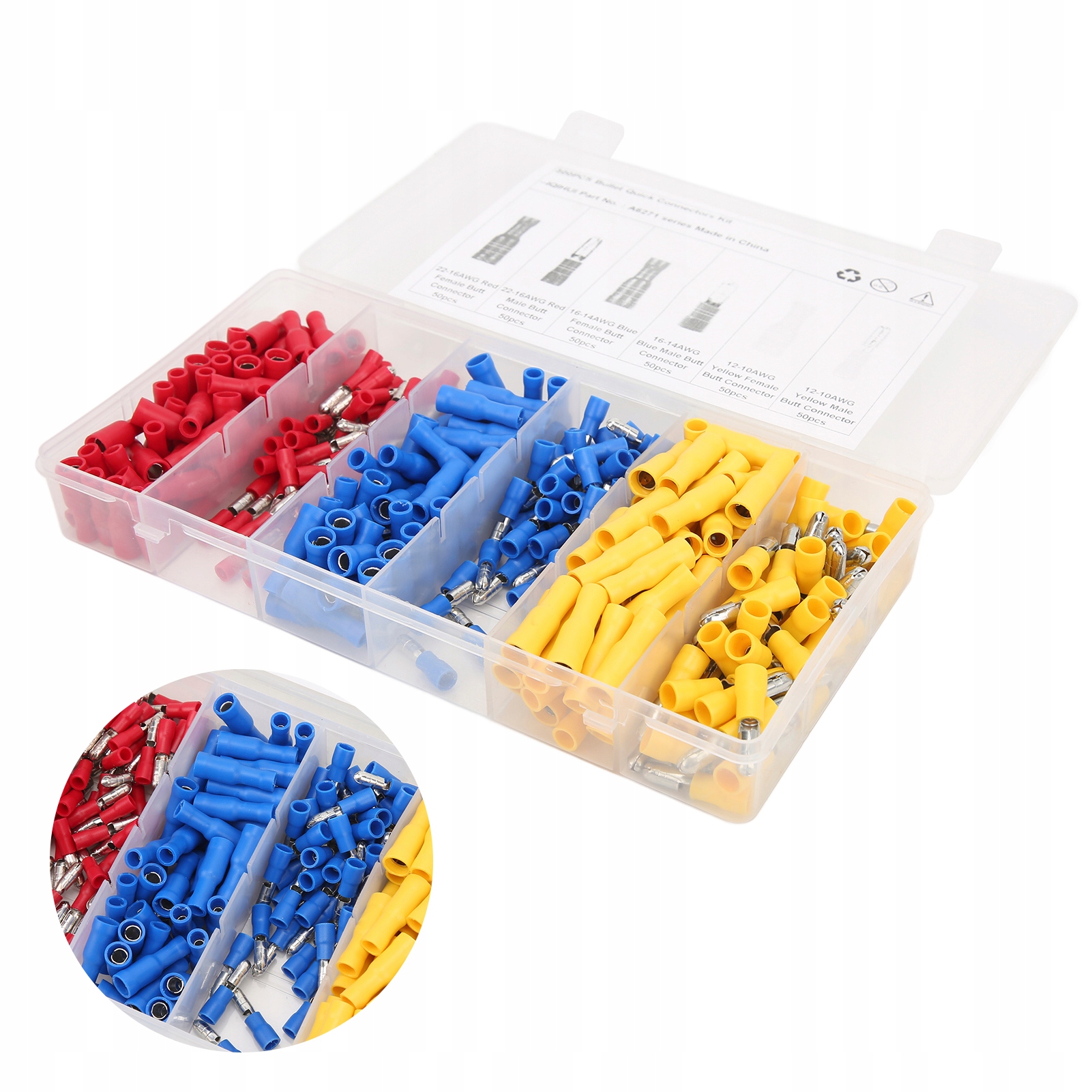 5. В комплект входят 50 красных разъемов 22–16AWG, 50 красных разъемов 22–16AWG, 50 синих разъемов 16–14AWG, 50 синих разъемов 16–14AWG, 50 желтых разъемов 12–10AWG, 50 желтых разъемов 12–10AWG.